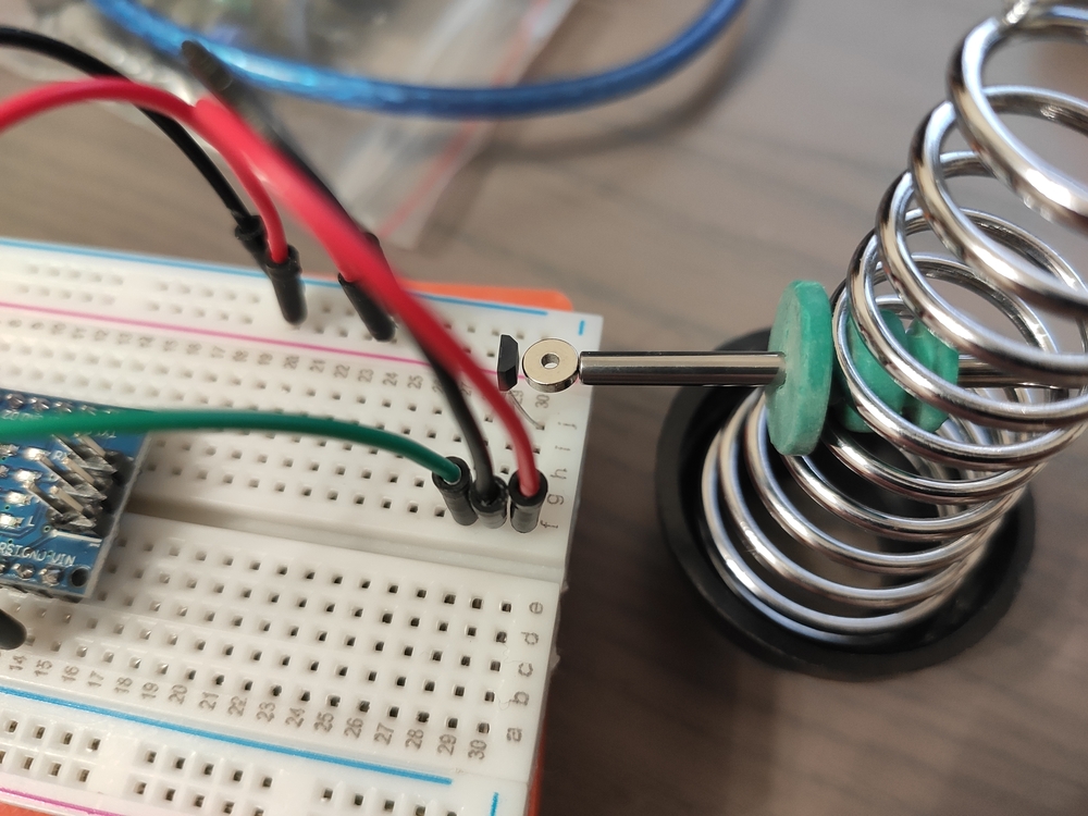 Собрал небольшой стенд, чисто проверить сигнал и чувствительность. Пока попробовал только обычный линейный (не 3d), модель ss494b, и кажется, что он и правда очень чувствительный. Экспериментальным путем выяснил, что магнит в виде диска с отверстием и именно таким расположением работает лучше всего, но надо побольше другие варианты покопать. Надо также попробовать сделать простейший механизм с рычажком типа как на индикаторах, чтобы маленькие отклонения щупа превращались в большие отклонения магнита через рычаг. Думаю, у 3d сенсора чувствительность будет лучше и в 3-х направлениях, но он в корпусе PG-TSOP, поэтому пока не трогал. Короче, можно продолжать. Сигнал немного шумный, но есть варианты решить это программно.