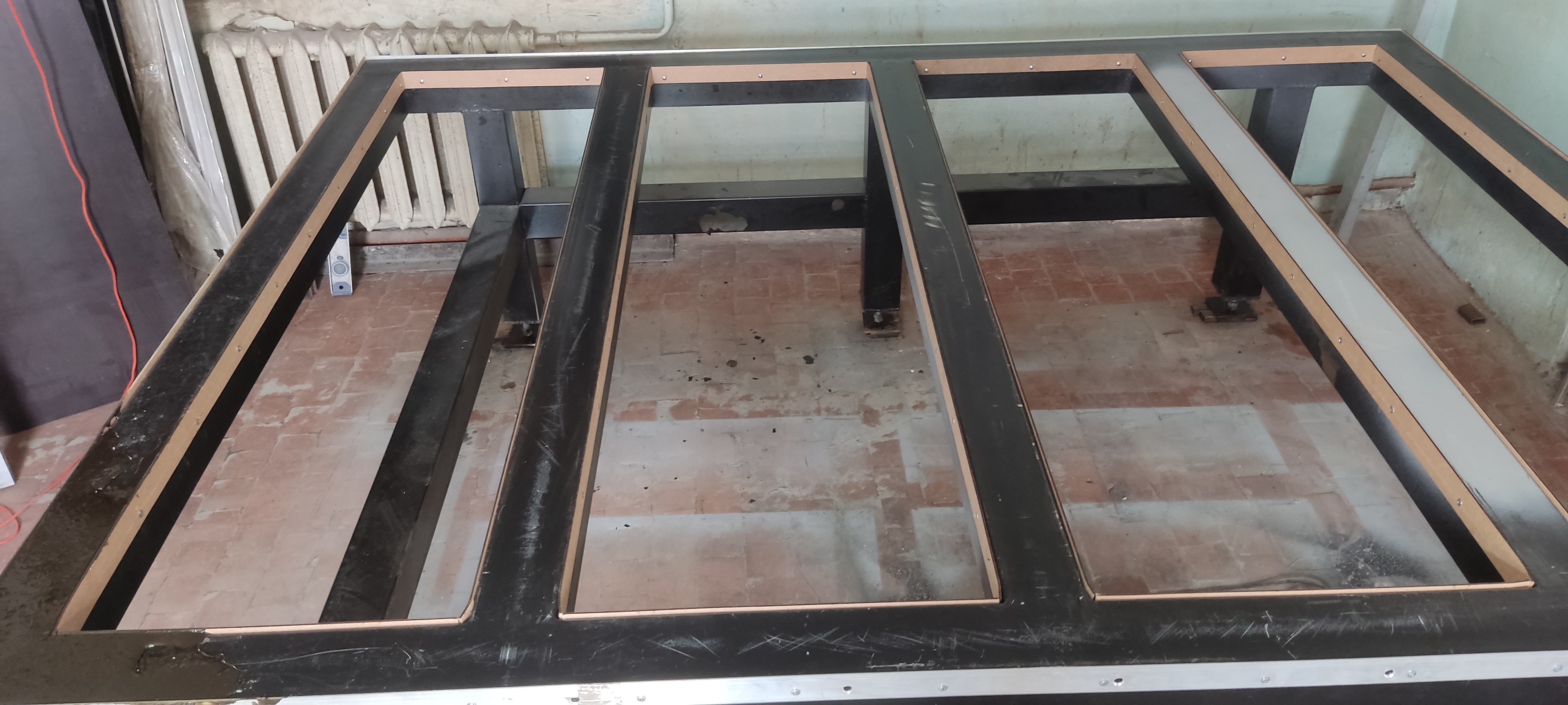 Всем привет. При сварки стола перекосило плоскость.. и я ни чего не смог придумать кроме как выровнять эпоксидной поверхность.. перекосило довольно сильно на пять миллиметров по плоскости высоты углов. Для сборки опалубки и тем более заливки бетона это очень много. До этого тоже варил стол для другого станка и его выкрутило ещё сильнее.. не пойму как люди делают сварные сварные станины для фрезеров по дереву допустим два на три метра.. там же будут погрешности лютые..