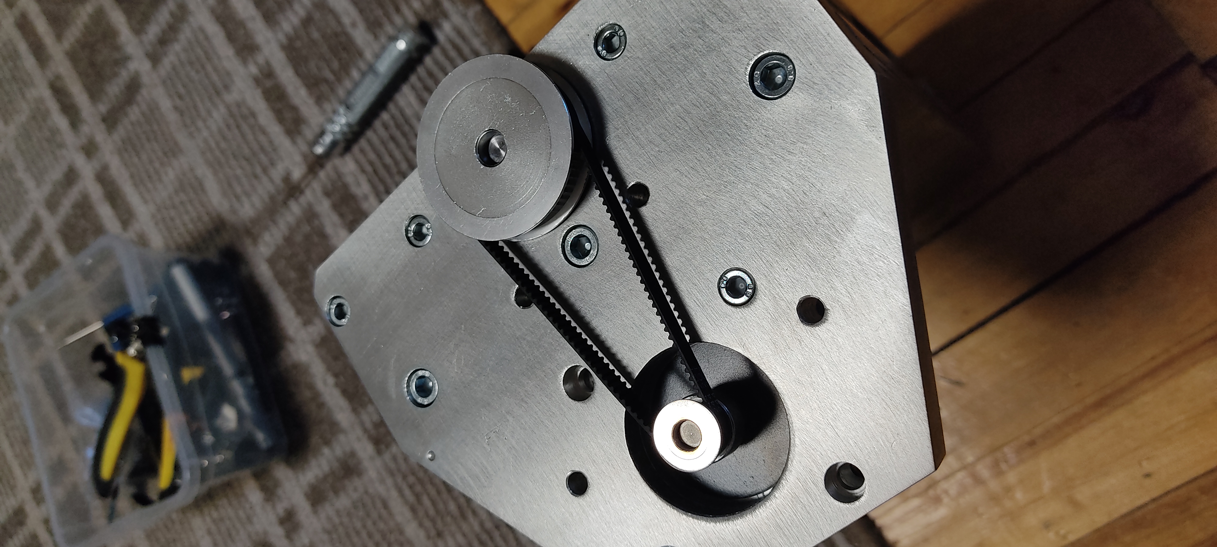 Поставил последнюю каретку и перевтулил шкив с 8 на 6.35. натяжка хорошая. Подвигал ось. Ход получился 70 мм. Плавно. Момент удержания при ручном режиме фрезеровки думаю будет достаточным
