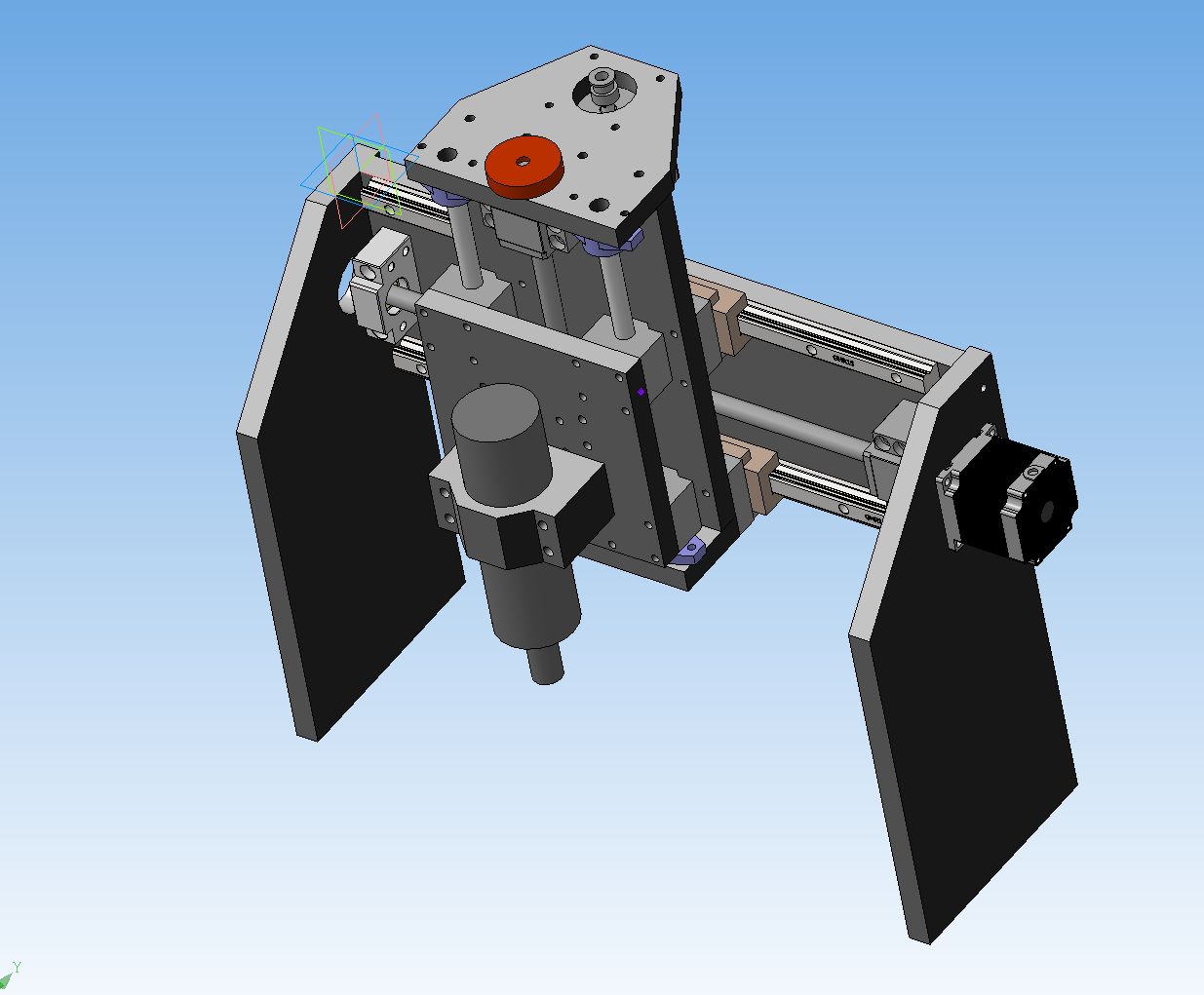 похоже не буду я изобретать велосипед. расмещу так. высоту портала постарался минимизировать, рельсы оси У максимально разнес. боковины будут прямыми и гипотетический центр будет ПРЕДПОЛАГАЮ посередине кареток оси Х...