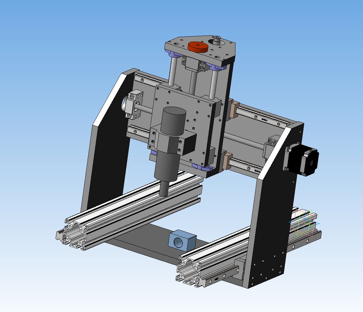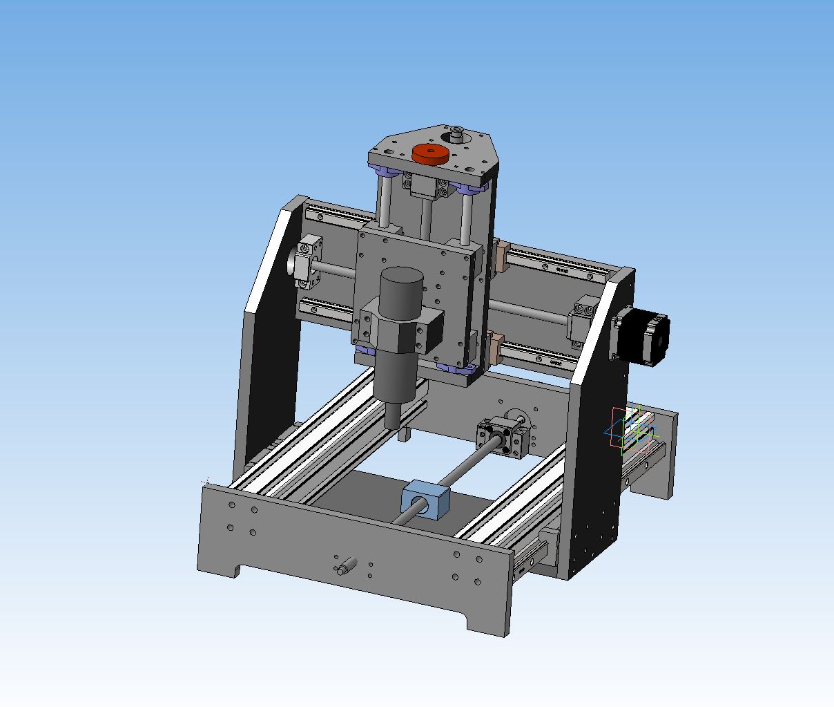 дособрал я станок в компасе. ниже фото. стопорнулся на опоре швп нижней, той что ближе к двигателю. вариант был либо двигатель выносить от стенки, либо опору. решил опору. либо распечатать проставку либо на стойки. потому что на нее поидее нагрузка только осевая, а на двигатель еще и на кручение.