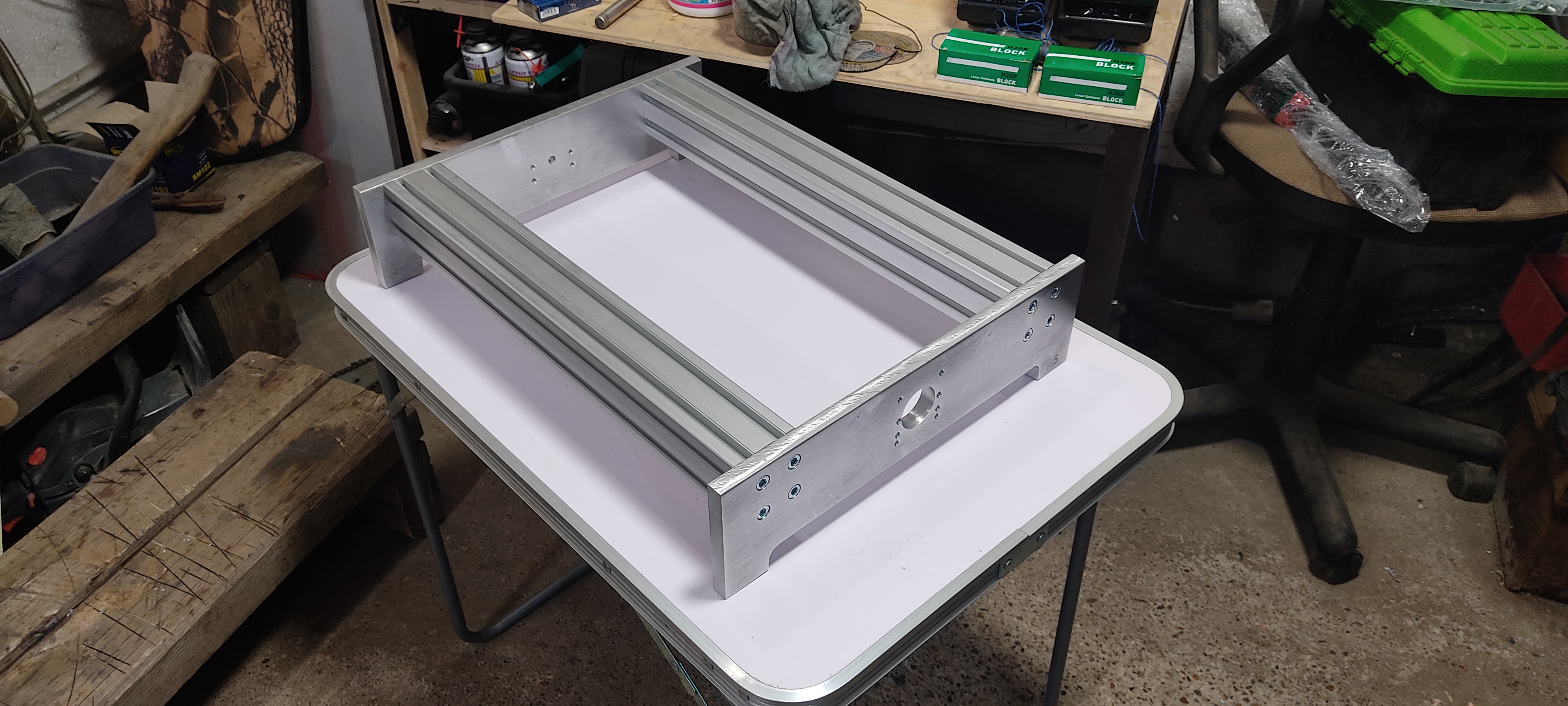Пока станок встал на паузу до выходных. Зато надеюсь в выходные вырежу две оставшиеся детали - переднею и заднюю панель основания. Останется стол, но он упирается в финансы. Литой фрезерованный с Т пазами думаю в 20-30т.р. выйдет...