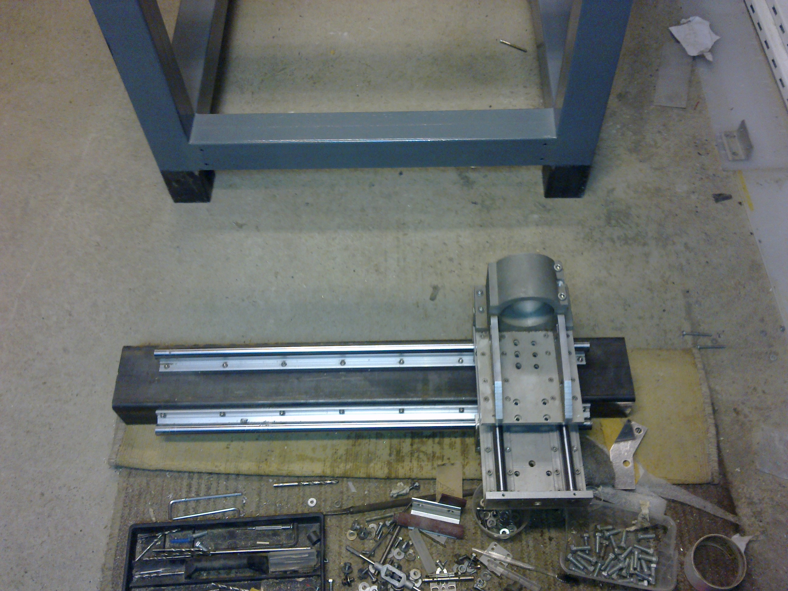 Вот и отпилили мне трубы, начинаю ваять станину :hammer: :rasp: :spanner: :pliers: , соединение болтовое, плюс по углам будут угловые косынки, пока нарезают косынки собираю станину. Каждое болтовое соединение будет скручиваться с фиксатором резьбы, естественно после подгонки и выравнивания :hehehe: