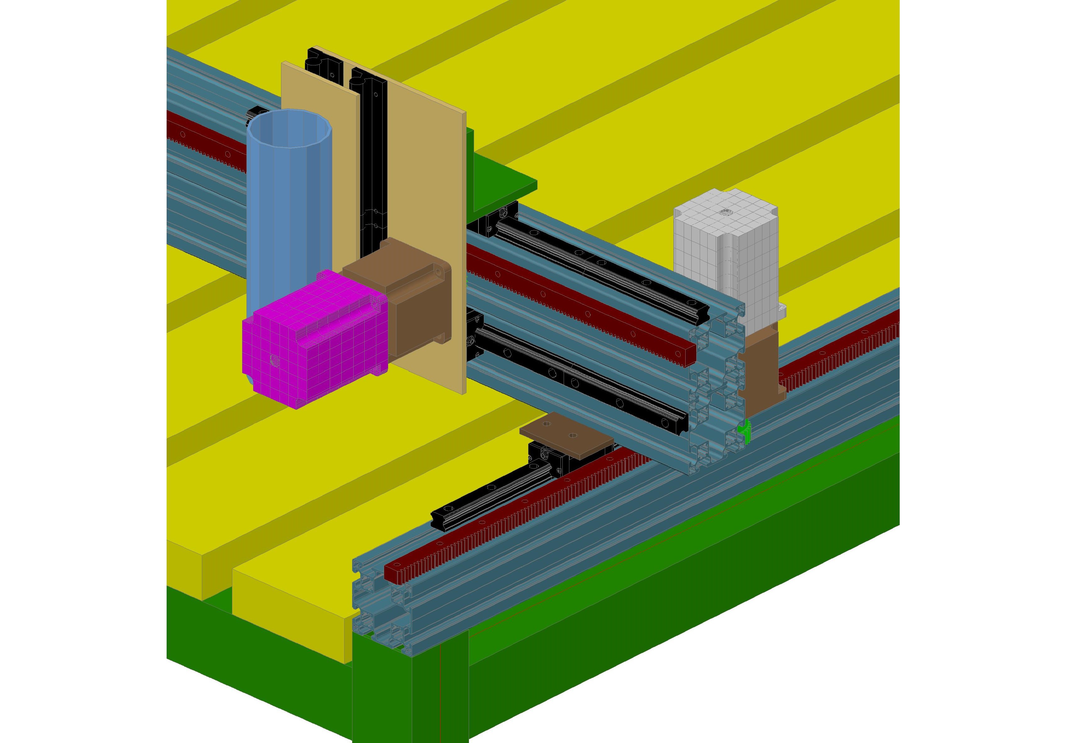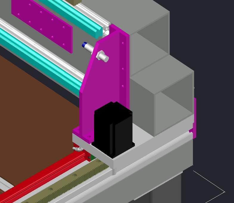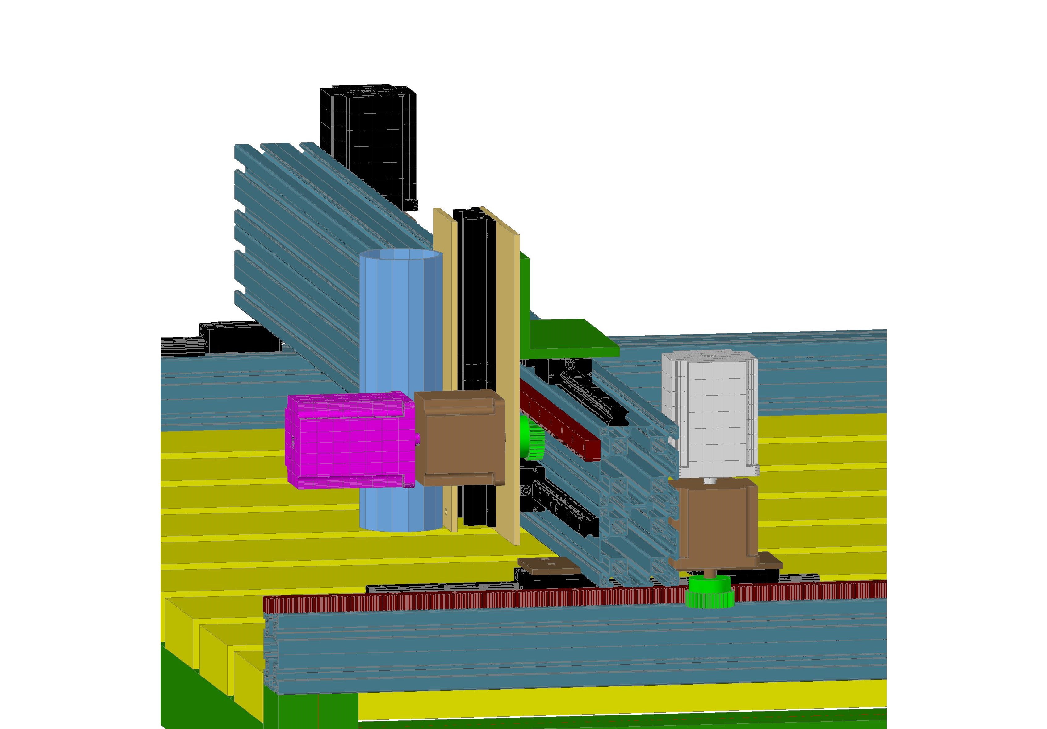 2. Поречная ось- помоему неудачное расположение мотора, нижняя рельса не в нижнем пазе. Рейку наверх и мотор на полку... По материалу можно сэкономить, не используя такой огромный профиль.
