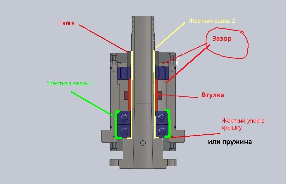 Саша, у вас колечко было нарисовано между крышкой и внешним кольцом подшипника, а также зазор между внутренним кольцом подшипника и валом шпинделя. А его там не должно быть.
