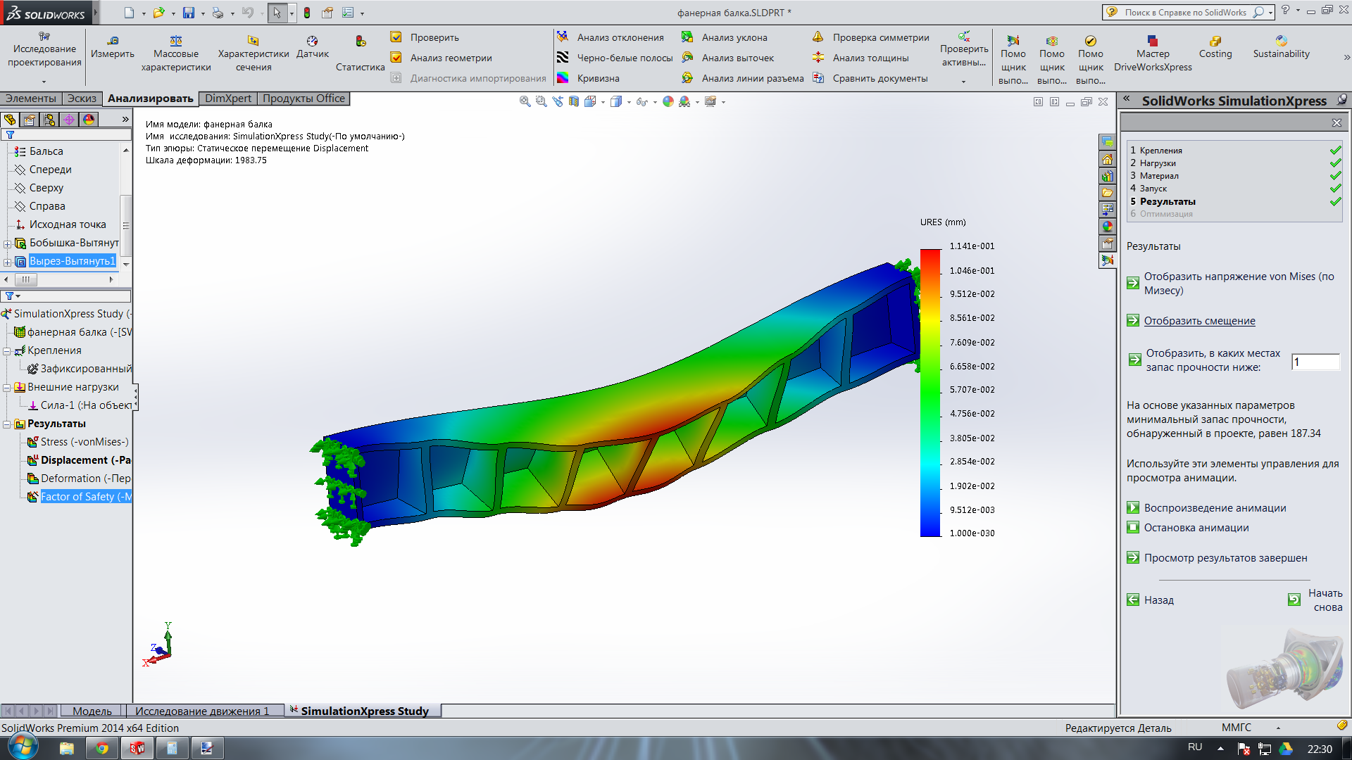 По быстрячку тут сэмулировал балочку. Материал для расчетов бальса. Думаю попрочнее фанеры будет.