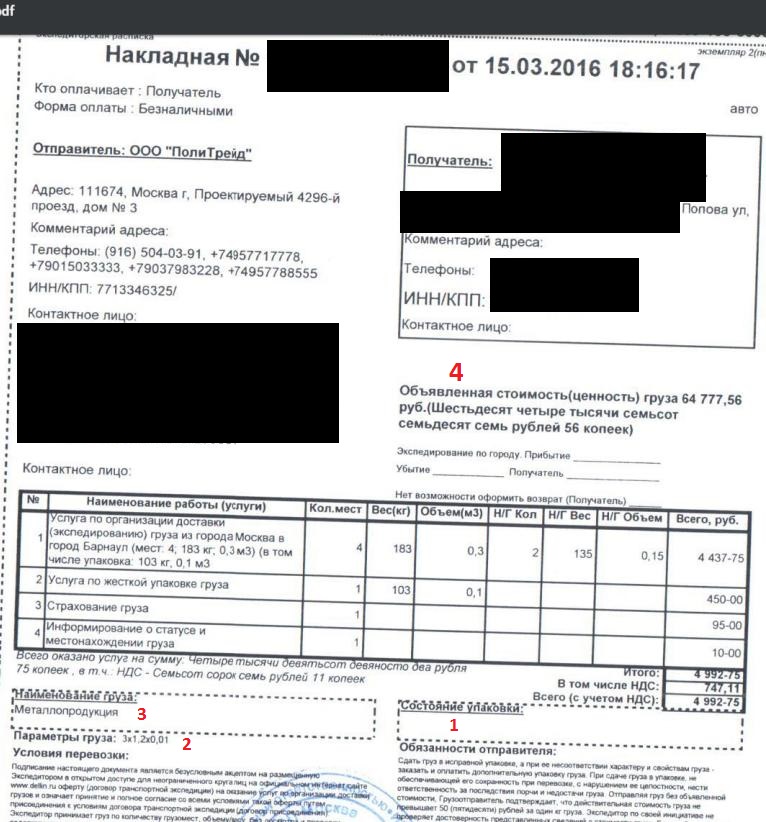 Только благодаря заполненной под страхом смертной казни графы: "Объявленная стоимость груза", нам удалось избежать убытков, в т.ч. репутационных .Ругаются водители с приёмщиками постоянно.