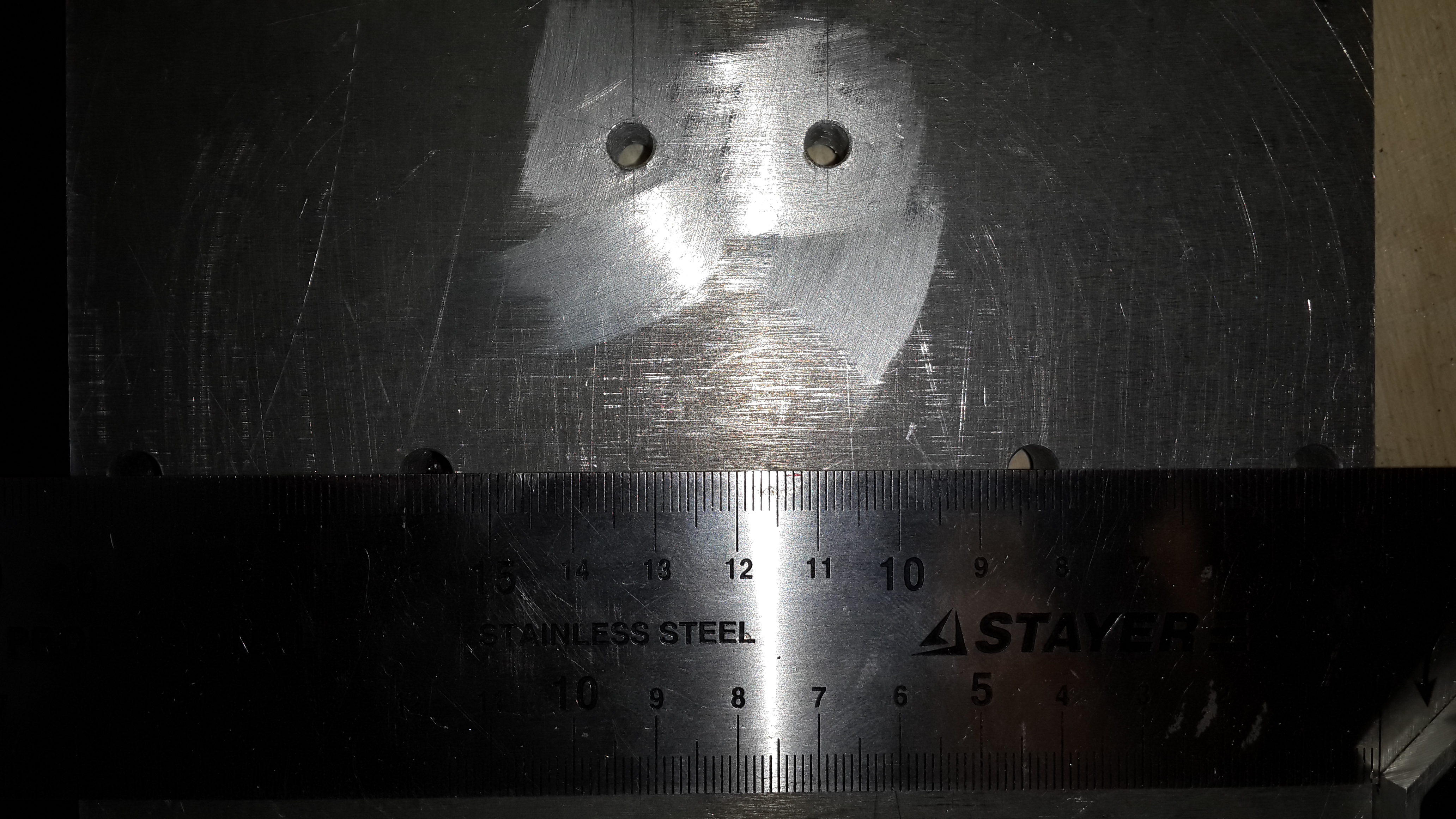 А вот тут вообще зачетно, видна разметка в которую он не смог попасть примерно на 0.5 мм. Причем не смог попасть ДВА раза так как видно, что отверстия заглушены, заварены и криво просверлены второй раз!