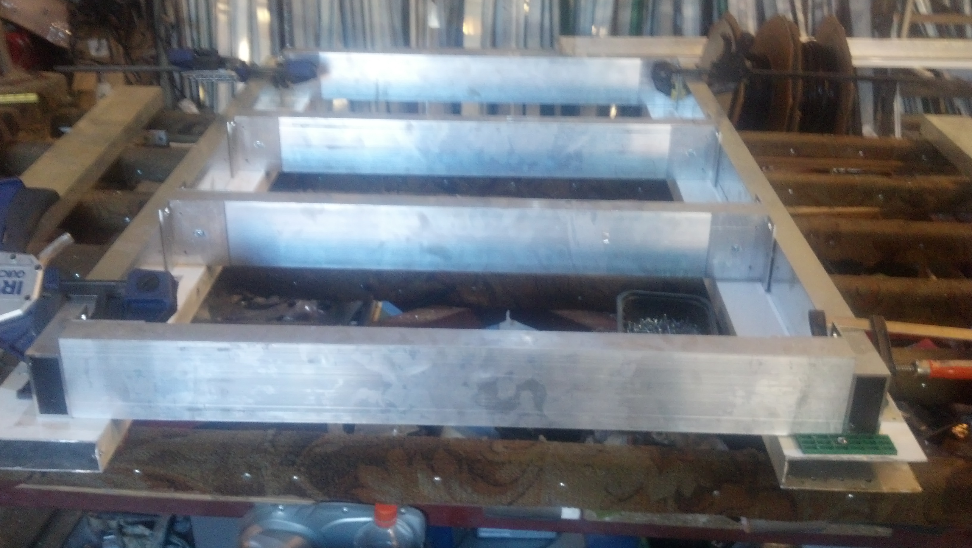 ещё не готов! но поперечины уже размечены и просверлены под них отверстия. если смещать то дырочки останутся! хотя....... столом же можно закрыть!)))))