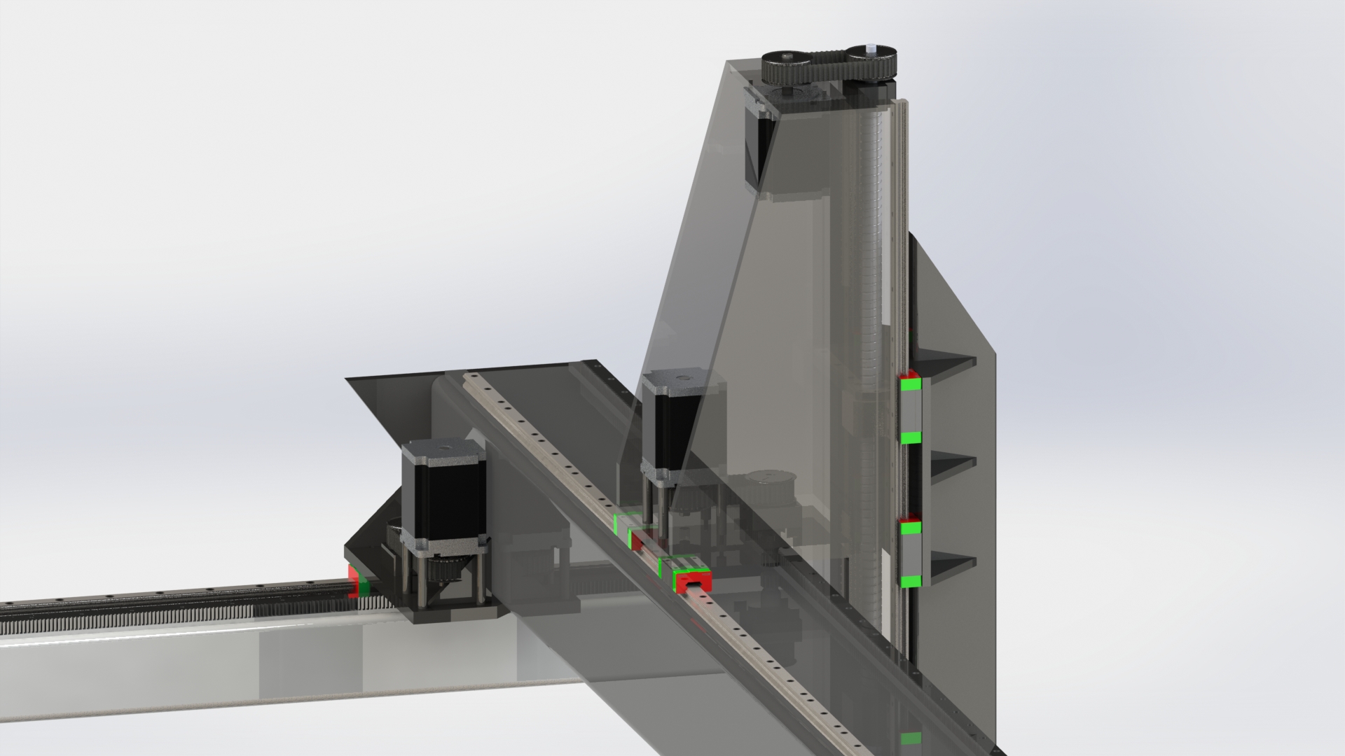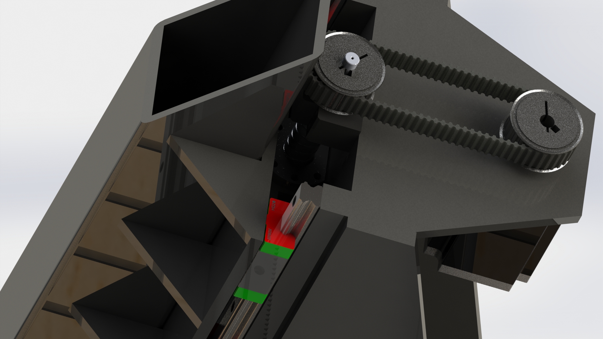Вообще изначально рейки были снаружи, но не смог поместить туда мотор шкивы и т.д.
