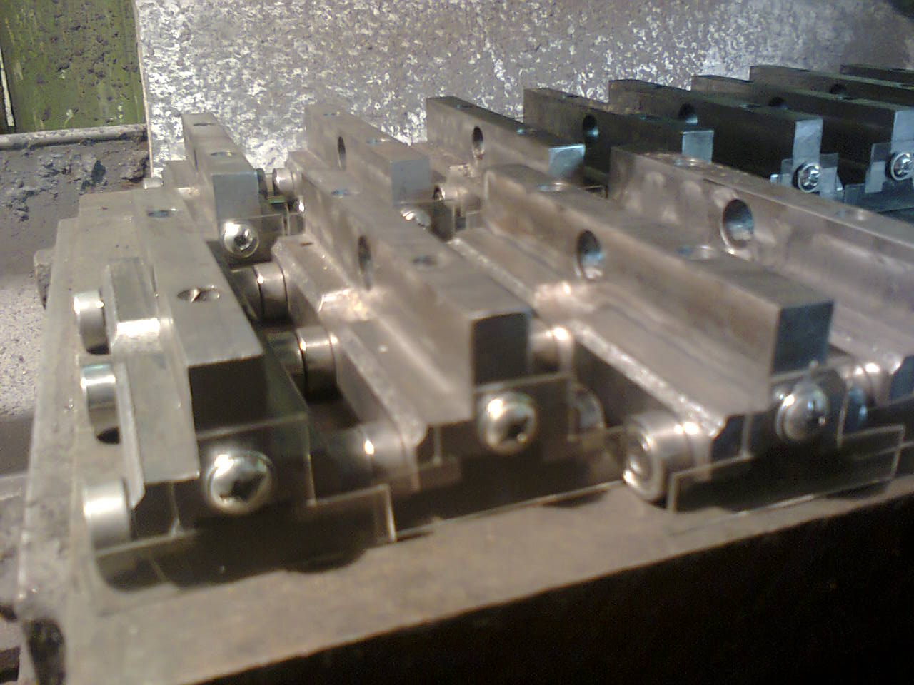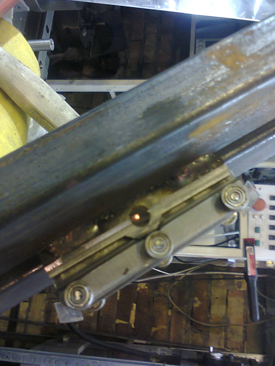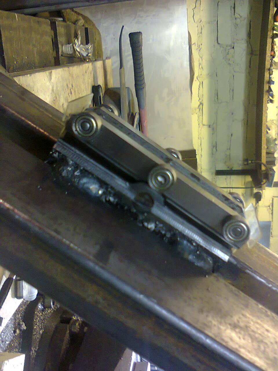 Для того, чтобы роликовые блоки нормально заезжали в раму, одна сторона блоков всё время подпружинена. При заходе блок получается сразу немного поджат колёсиками вверх