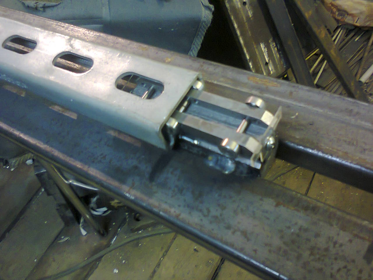 В довершение капнул сваркой у штифтов, чтоб случайно не выскочили. Завтра зачищу и можно раму собирать. Если в этот раз всё соберется хорошо, останется докупить зубчатую рейку, чтоб наварить сбоку платформы. Привод будет от низковольтного Kollmorgen Servo Disc с редуктором. На выходе редуктора 52 Н/м. Моща большая при размерах в два кулака. В машину будет установлен второй аккум с контроллером зарядки от основного генератора с автоматическим отключением. Планирую, что рама будет выезжать из кузова до 1,5м, управление вперед-назад кнопошками, хотя можно и радиобрелок приляпать :) Фиксация в салоне будет отрезками зубчатых реек, ну типа рейка в рейку. В раму будут вварены дополнительные ребра жесткости. Кило 200-300 должна держать легко. Как закончу, докину фоток.