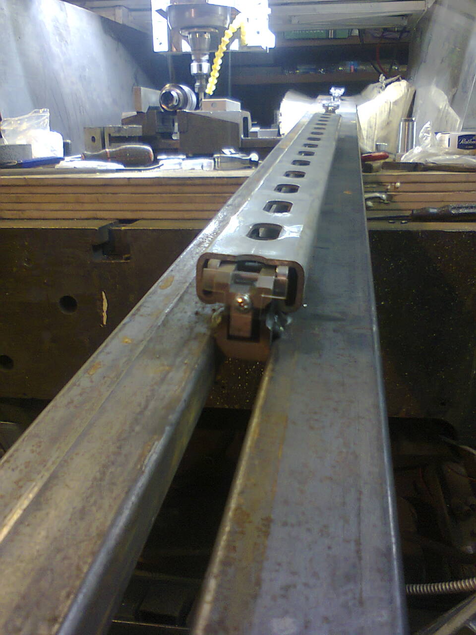 Примеряю обрезок направляющей, подшипнички крутятся, шкребки гребут :)