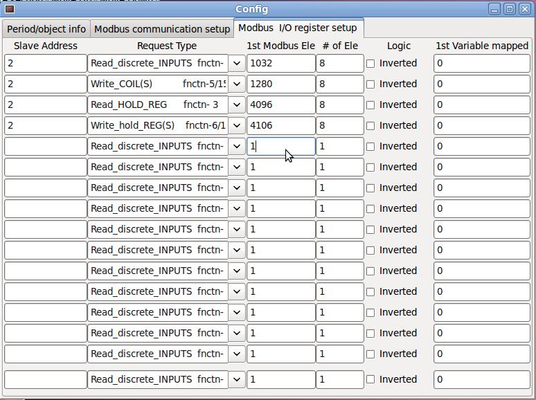 Уважаемые коллеги! Перечитал эту ветку, но так и не понял как настроить EMC2 для работы с COM портом. Суть проблемы, имеется промышленный контролер с MODBUS скорость до 115200. В контролере имеются 4 синтезатора частоты до 200 кГц с разрешением 1 Гц. У меня серводвигатели и им маловато 50 кГц, которые выдаёт LPT порт. Мысль такая, постоянно передавать по MODBUS сразу одной пачкой скорости для всех синтезаторов и выходов, контролер по прерыванию записывает полученные значения скоростей в синтезаторы. В ответ контролер передает в EMC2 состояния своих входов. EMC2 легко работает с входами и выходами контролера по MODBUS, а вот как настроить EMC2, чтобы он передавал по MODBUS рассчитанные им скорости для осей.