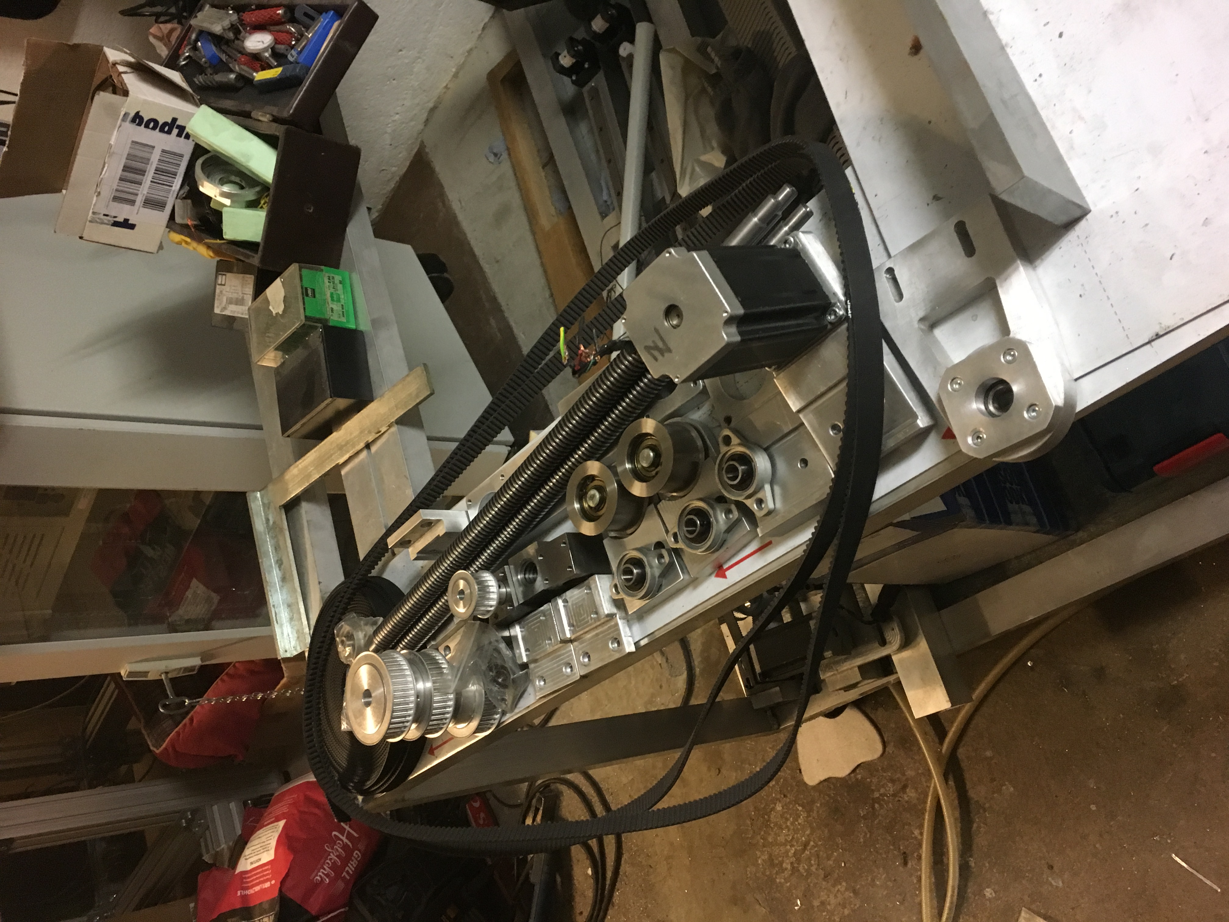По X и У Сервы 200вт, стол подьемный Нема 34 привод цепь.