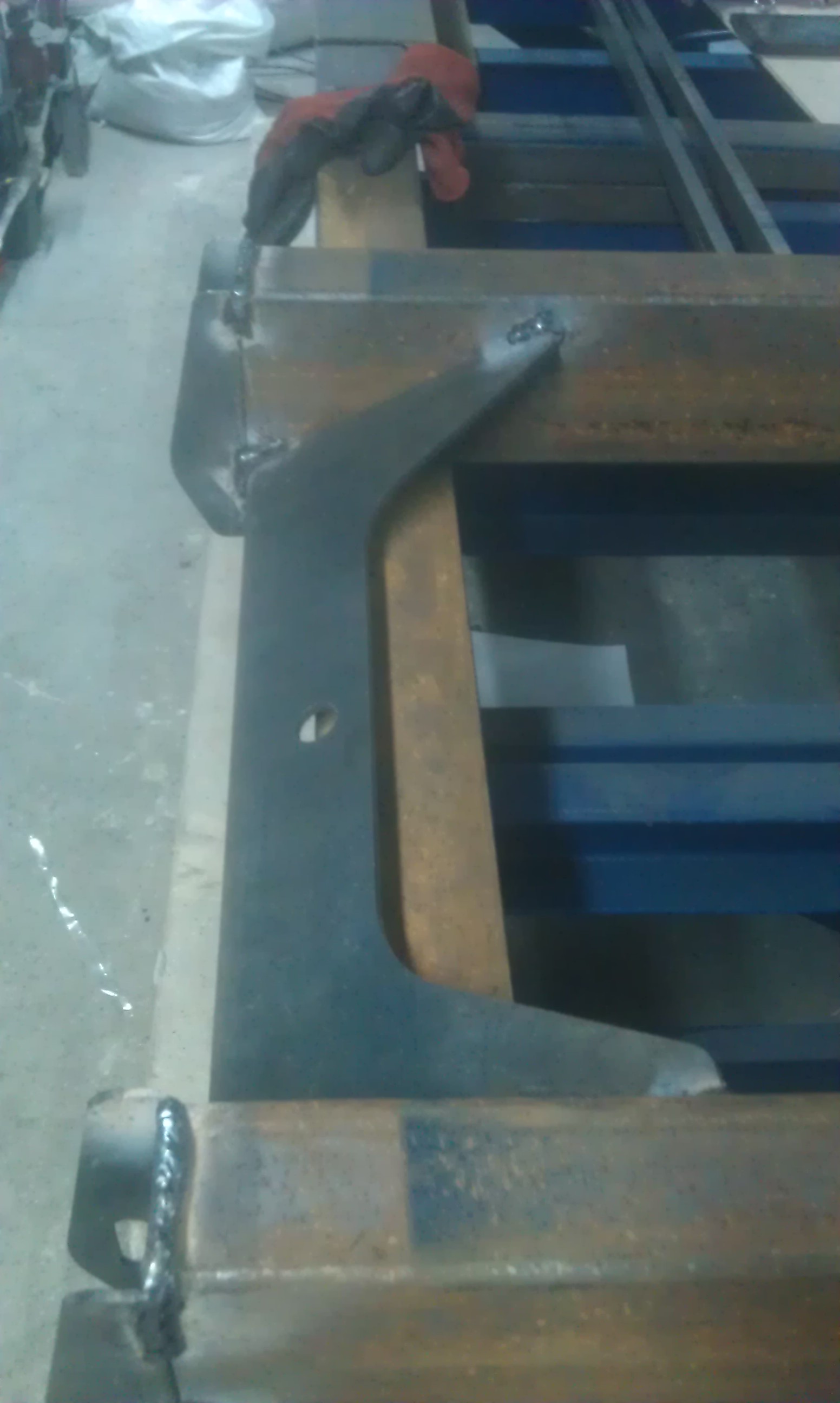 На втором фото поперечная стяжка далеко, надо 50 мм от пластины. Чурки, которые подложил, убери и притяни к 20 швеллеру струбцинами. Проверь угол труба-пластина должен, быть 90º