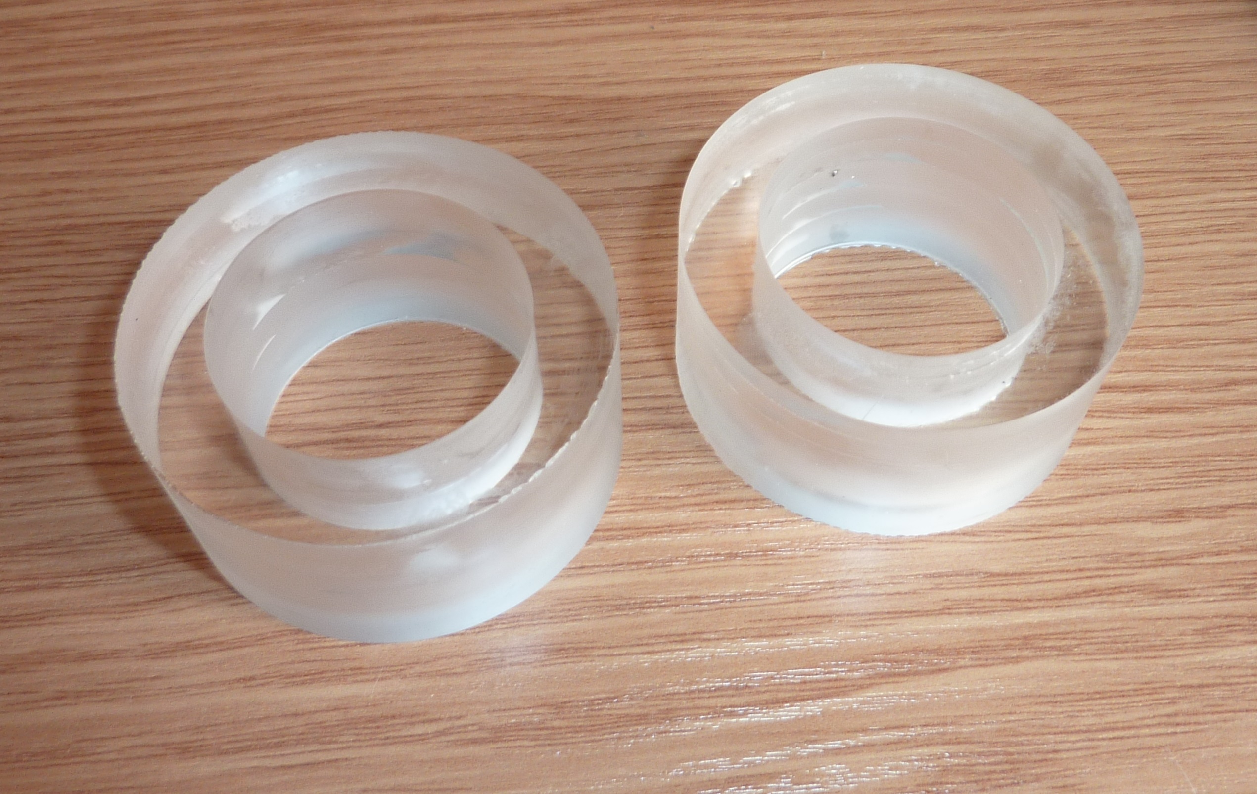 Ой всё просто, дихлорэтаном с стружкой того же орг стекла, склеены криво от руки, сжаты прессом, а потом на токарном снаружи и внутри проходы.sas_75 писал(а):Чем так аккуратно склеены кольца акрила между собой?