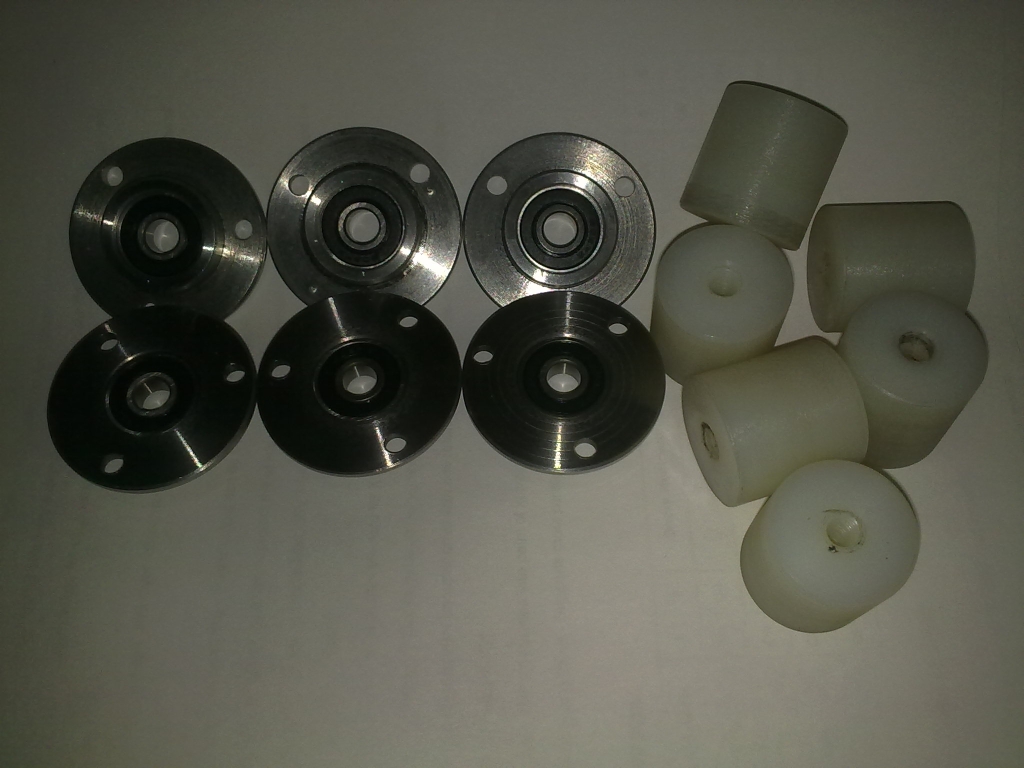 Вот такие стаканчики с подшипниками и капролоновые гайки: