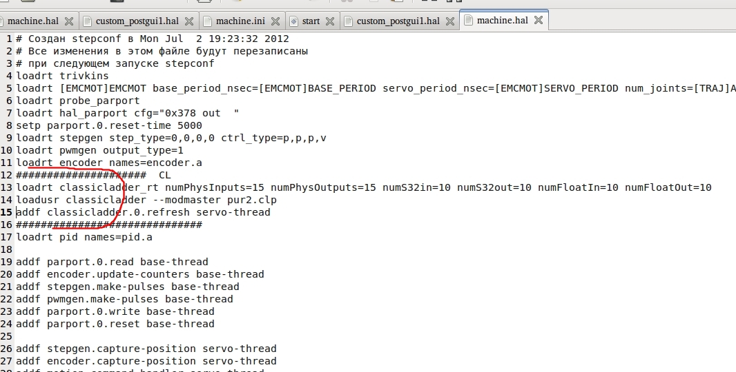 расскоментируй (убери "решетки") вот этих 3 строки в machine.hal: