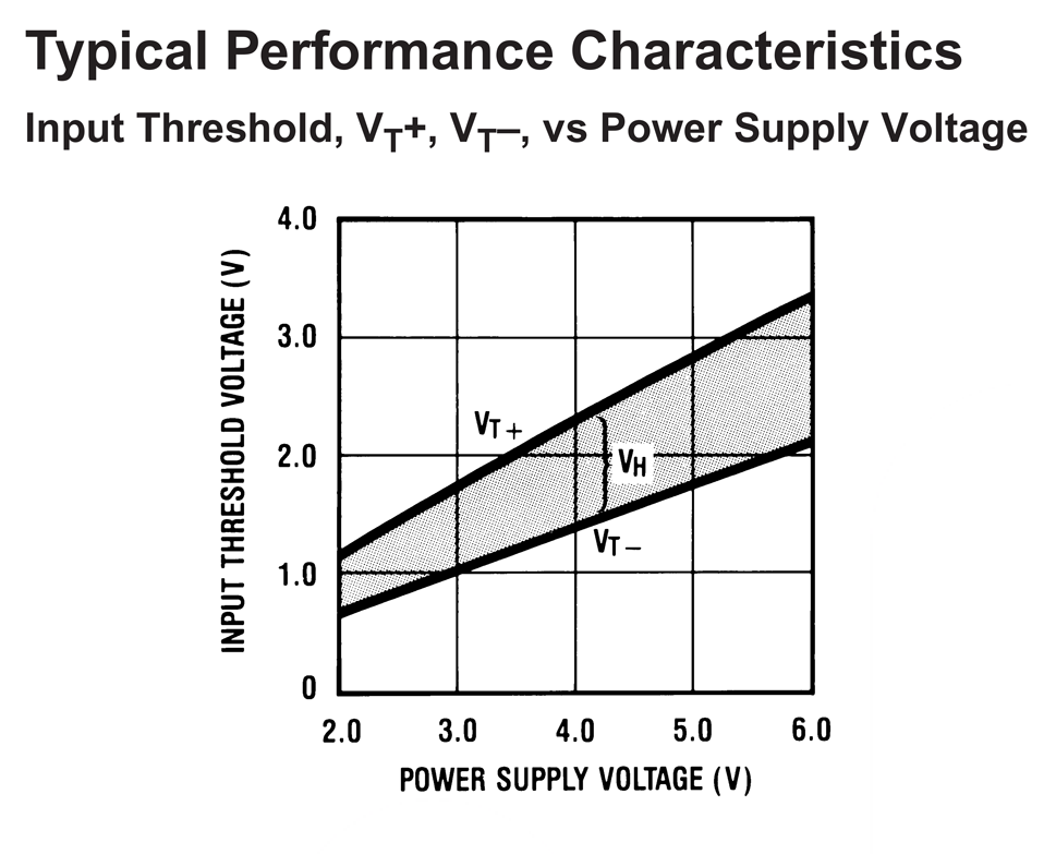 При чем границы переключения триггера сдвигаются пропорционально напряжению питания: