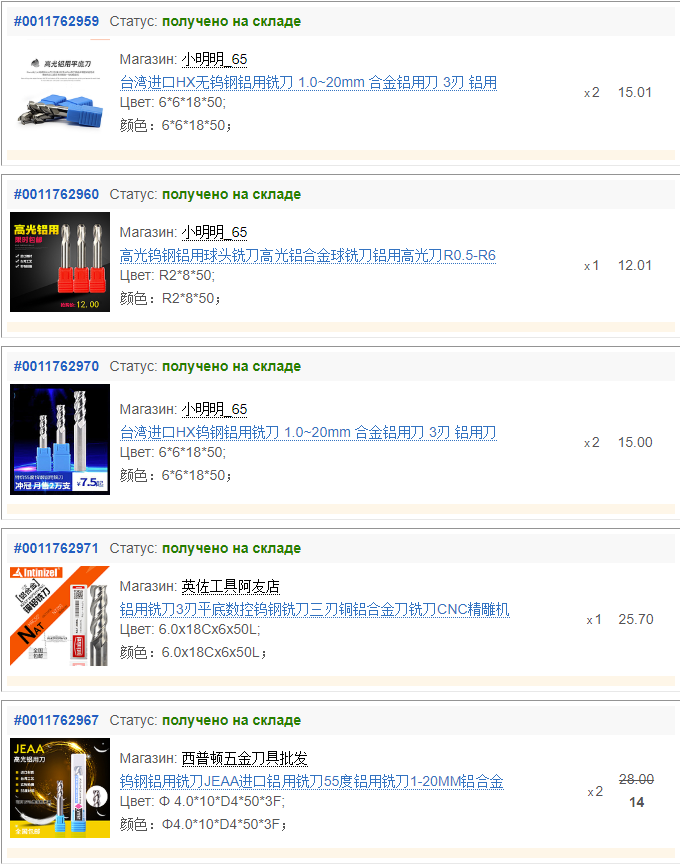 Не реклама. Просто адекватный посредник. tbfocus.com Немного раньше на пробу заказал стружколом за 5$ от одного из посредников. Ценник они выставили за доставку AirMail 34$Umnik писал(а):shalek, а ты через какого посредника заказывал?
