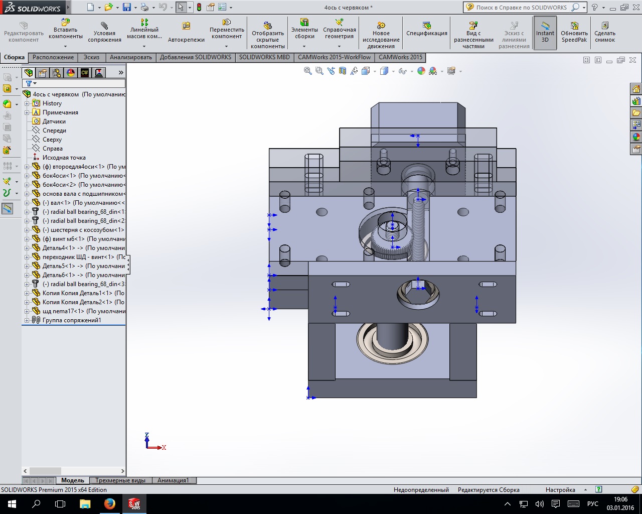 Спроектировал 4 ось для червяка, учитывая необходимость в выборке люфта: