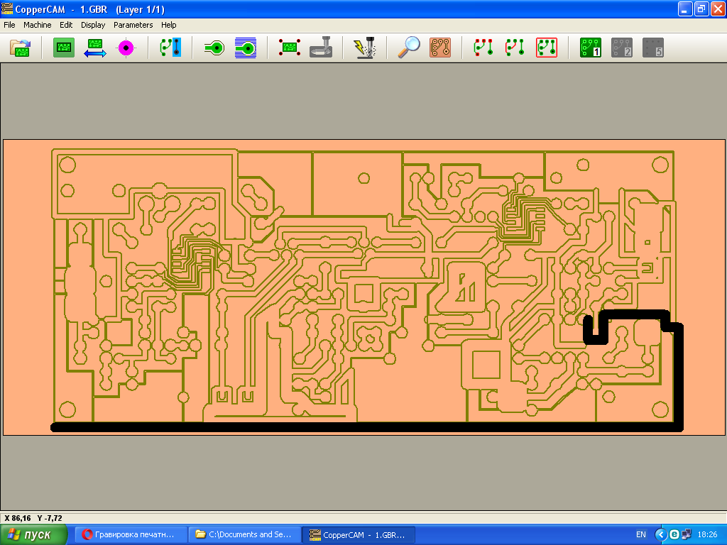 Можно в спринте при выгрузке в .plt задать и далее stepcam, а можно в копперкаме - практически в первом же окошке (вычисление контуров), чем больше проходов - тем шире "канавки" и меньше меди остается вокруг падов.FAER48 писал(а):А как это сделать и в какой программе?