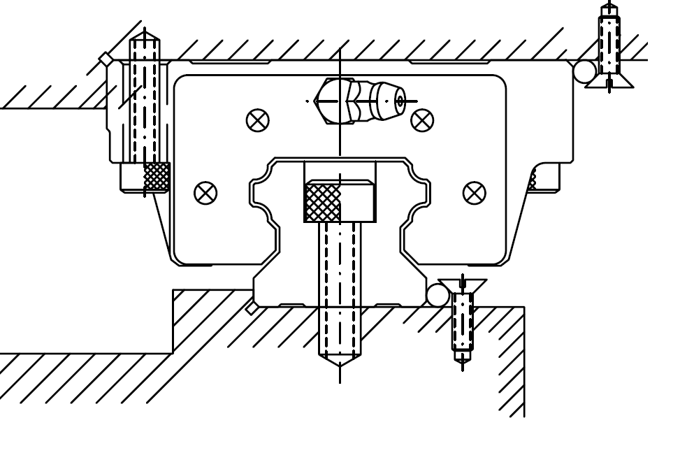 Прижимные планки стоят только на одной паре кареток, что со стороны мастер рельса. База под каретки шлифованная за один проход и установ. Вторые пары кареток имеют широкий паз +5 десяток, чтоб каретки можно было их свободно двигать и потом притягивать уже одев на рельсы.