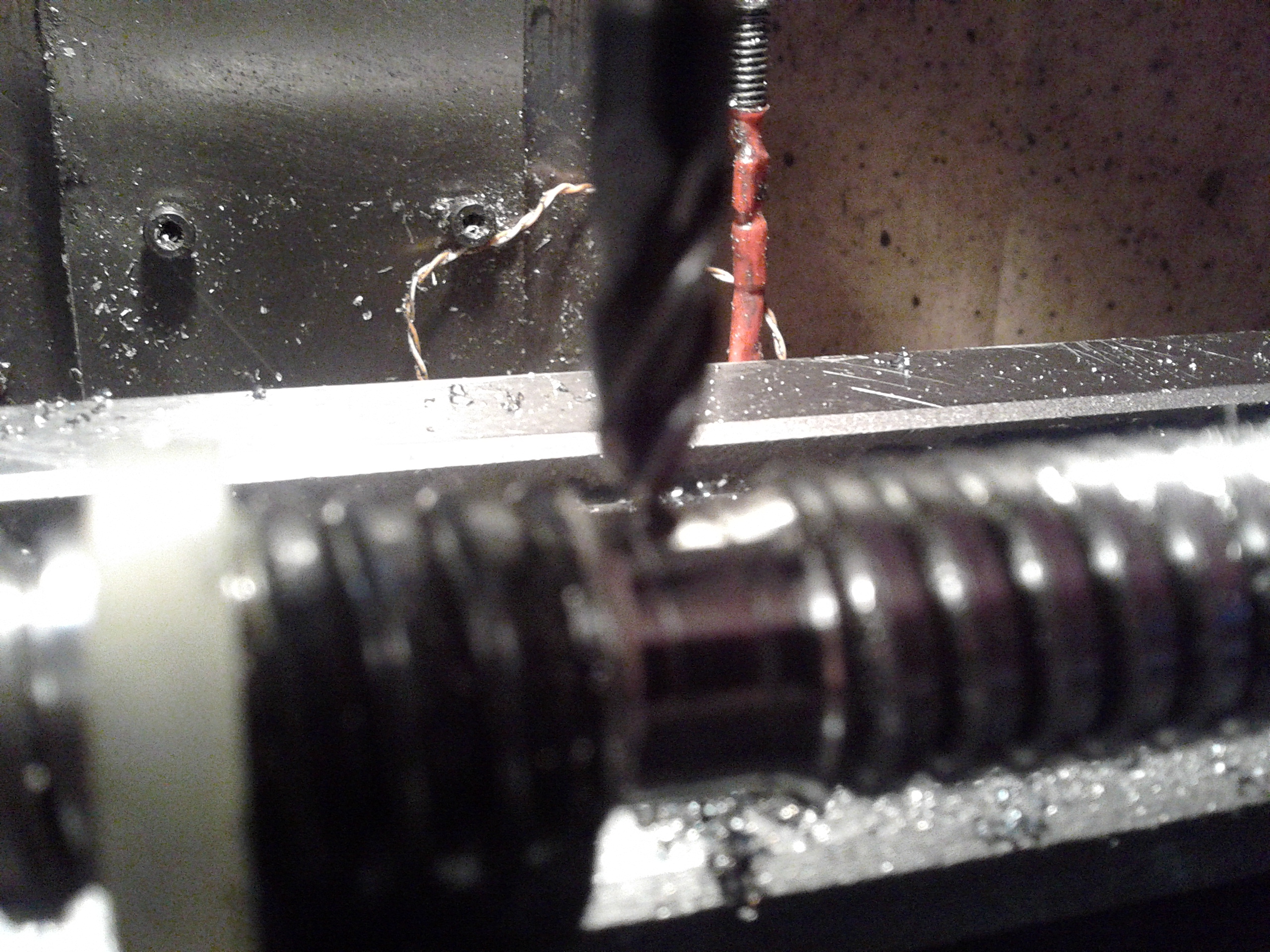 Что-бы его обрезать и сделать посадочное место под подшипник пришлось придумать самопальный токарник из дрели,зажимов, и сломаной ТС фрезы которую я использовал в место резца.