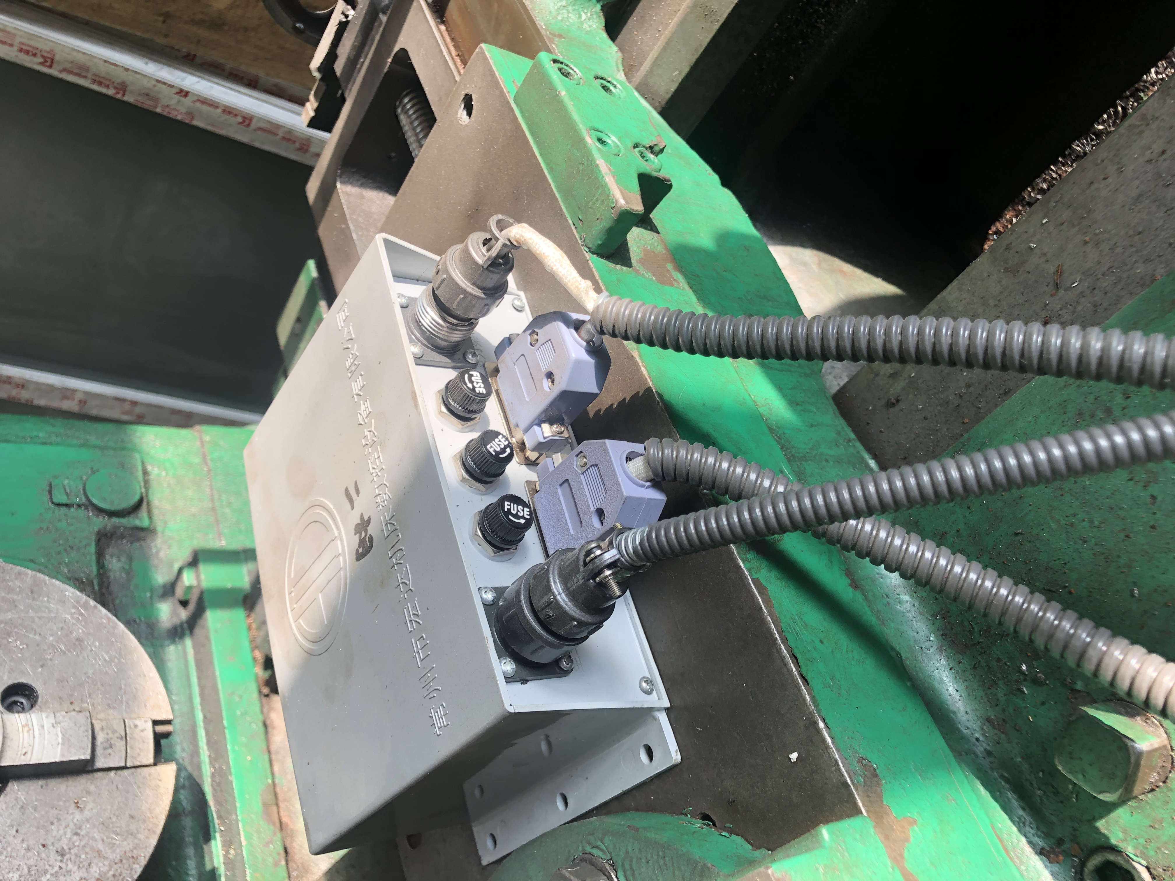 Подключается через коробку control box в неё приходит питание и управление от контроллера, и от неё уходит питание и управление на саму резцедержку