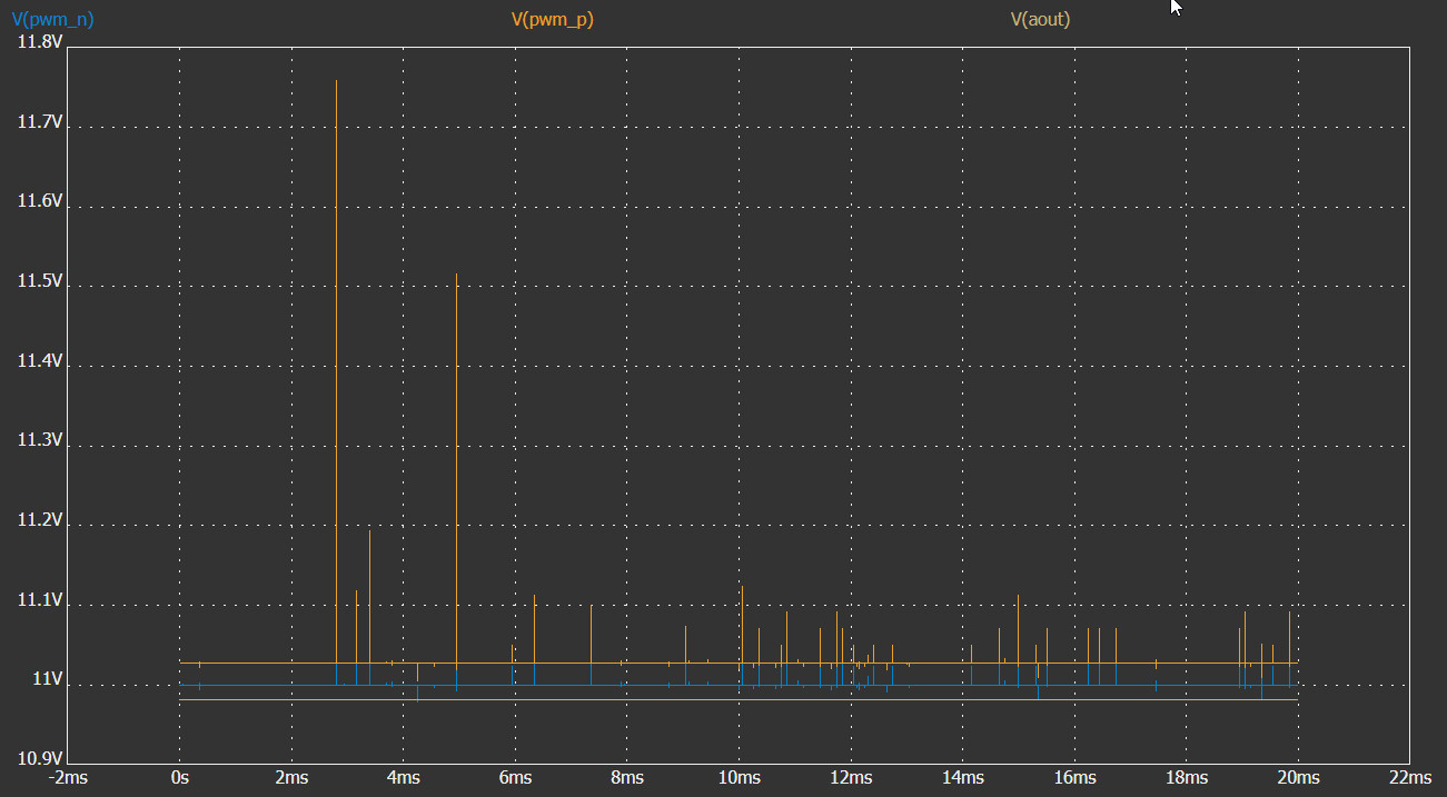 Но симулятор эту схему из примитивов симулирует очень странно. Либо это я опять что-то не докрутил, либо симулятор хочет чего-то другого от схемы