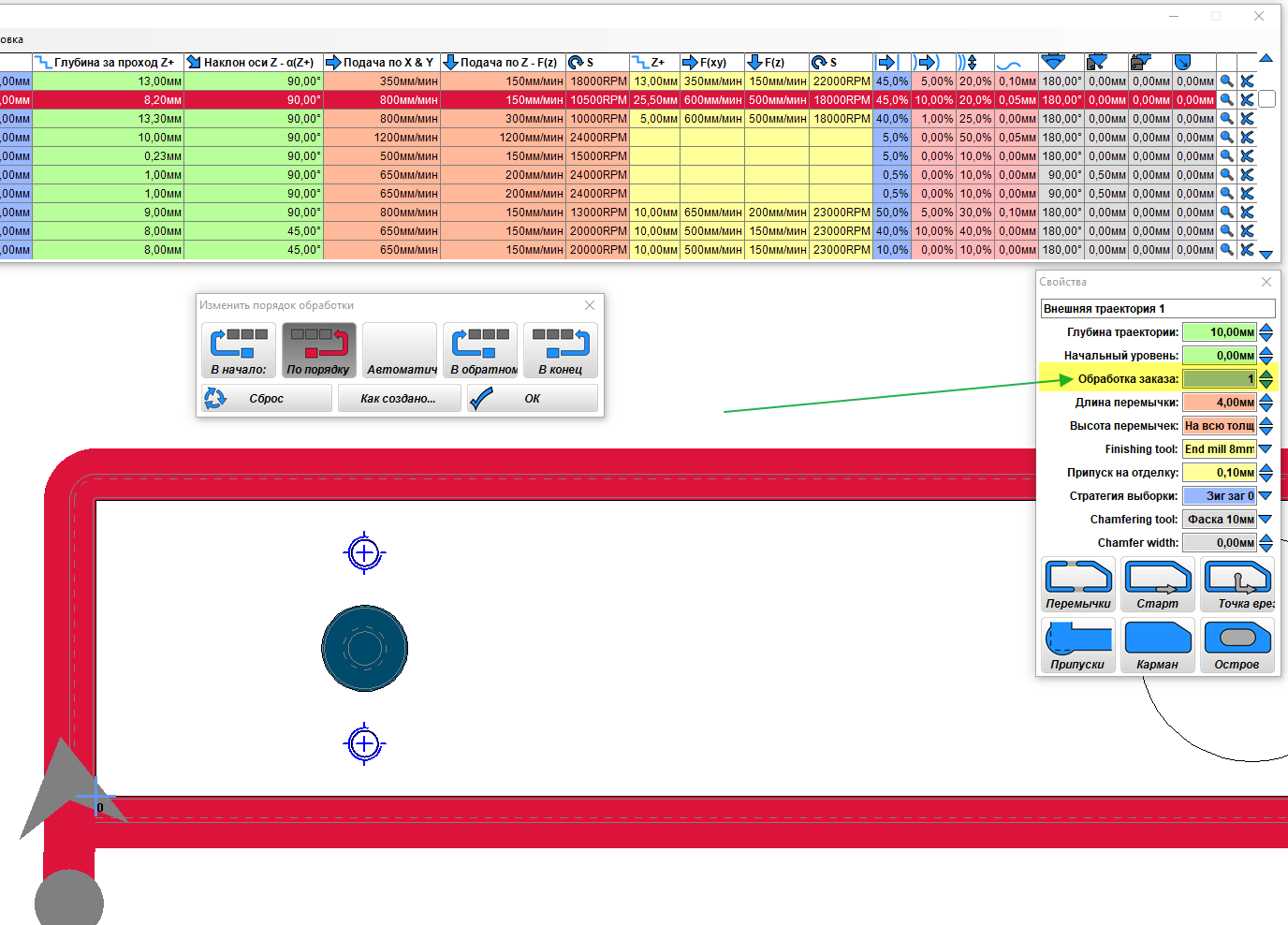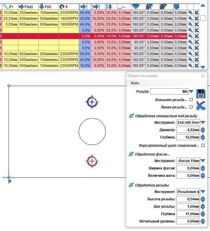 думать ничего не надо, уже все предустанолено... по стандартам резьб стрелкой обозначил (глубина резьбы 0,54мм, за раз фреза снимет 0,23мм, т.е. 0,23+0,23+чистовой проход 0,07мм) можно все корректировать... + впридачу фаска + сверление. А то у вас чето слишком сложно...