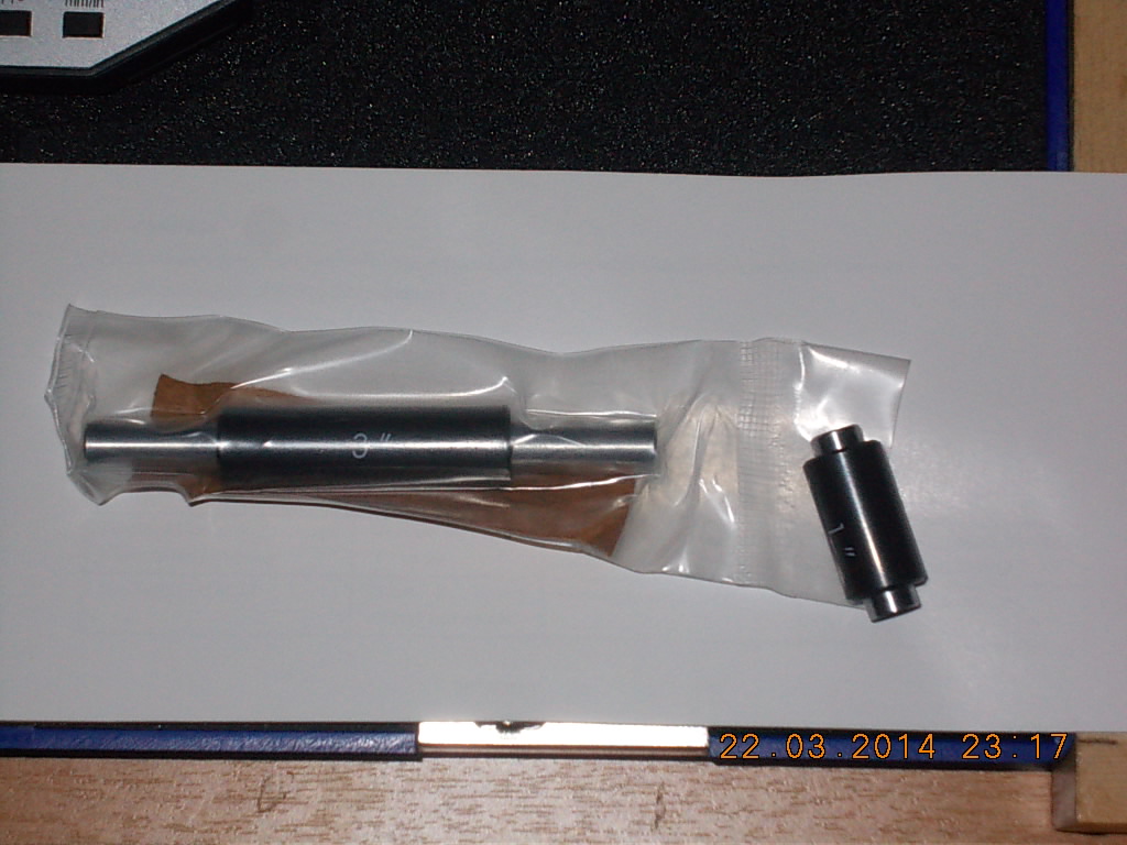 Микрометры имеют калибры. Это шлифованные цилиндры заданной длины. Калибры имеют пластиковый корпус для того чтобы минимизировать погрешность от нагрева пальцев рук.