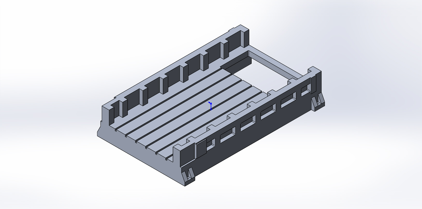Выглядит грубее чем модель под литьё в землю, но обработка сократится раза в два. И в весе станина потеряла около 10 кг.