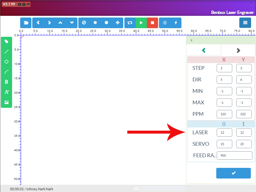 Огромное спасибо за наводку. Подошла (пока) Grbl v0.9g И шаговики работают как нужно и лазер.silence писал(а):Так же можно попробовать залить страую прошивку 0.8 из последних допустим оставшись на 12 пине.