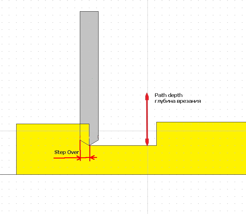 Path depth- это глубина паза, StepOver-толщина срезаемой кромки. Включи в программе настройки по максимуму, поставь галочку Animate preview и Draw tool. Нарисуй объект толщиной, допустим 10 mm меняй настройки Паздепт и Степовер и визуально все поймешь.