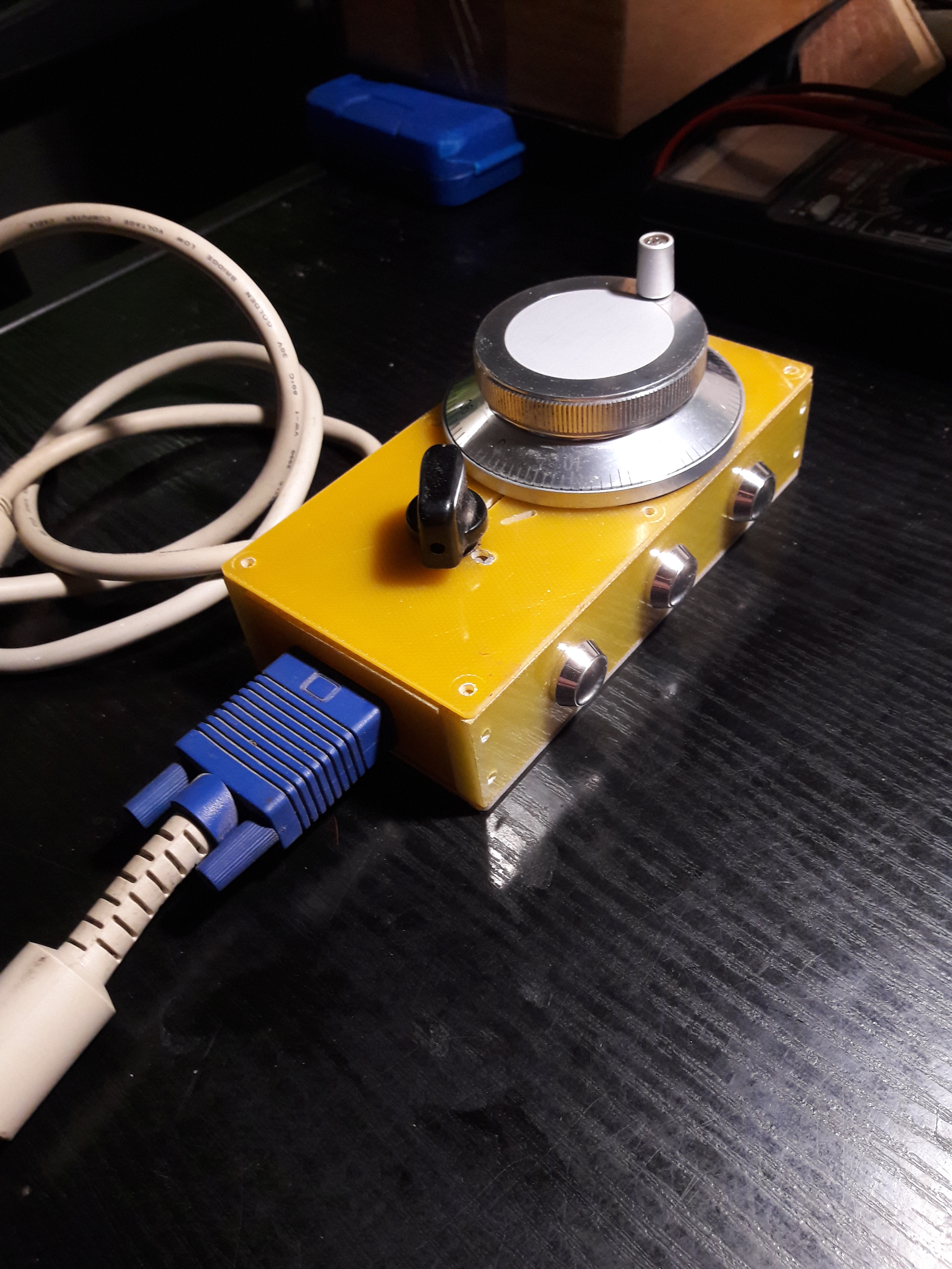 Всё поехало как надо ,просто в моём случае кнопки выбора осей общий притянул резистором к 3.3 вольта ,а множитель просто на ноль.Выставил 0.1мм на тик и 0.01 мм. С третьим режимом есть заморочка.Главное всё поехало и софтлимиты не нарушает !Позволяет хоть все 3 оси двигать одновременно !Осталось выбрать дизайн и запилить корпус, кабель потребуется 10и проводный мягкий ,в HDMIном сколько интересно?
