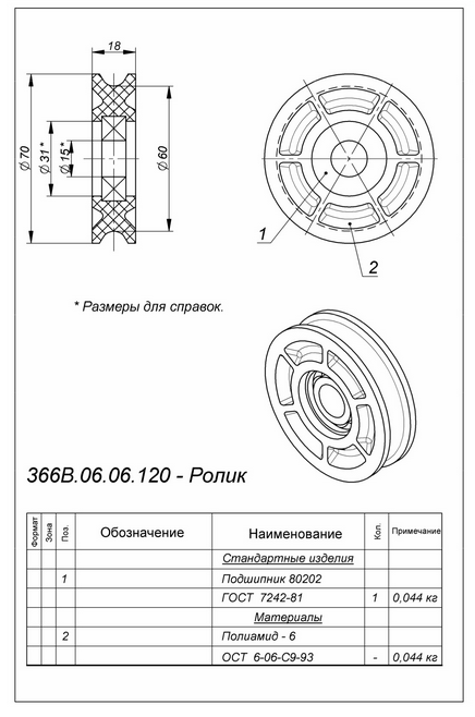 -Ролик каретки дверей лифта d=70мм с подшипником 366В.06.06.120 59р с НДС / шт