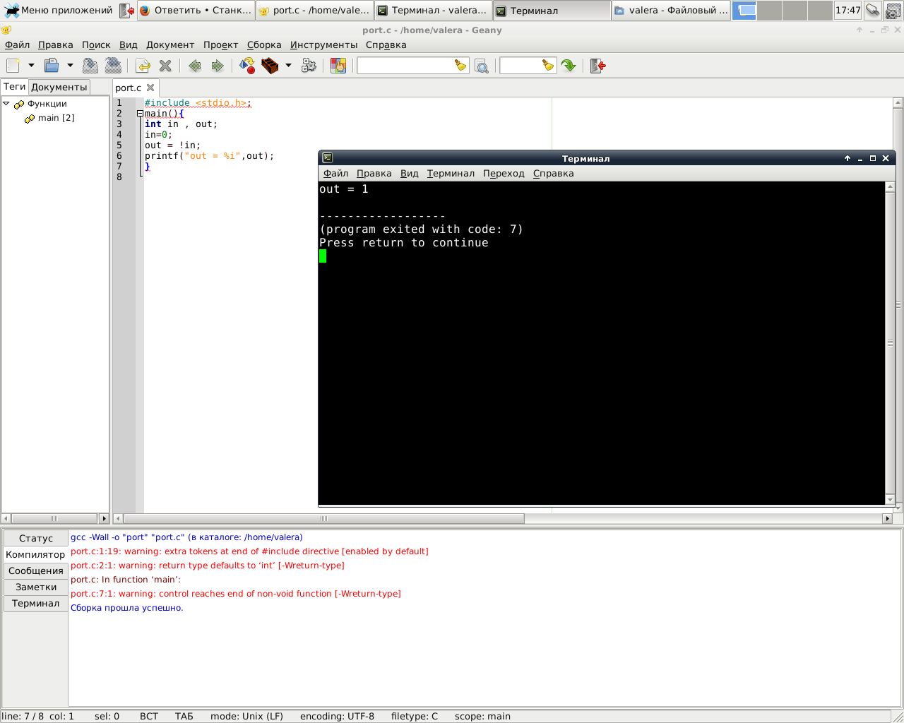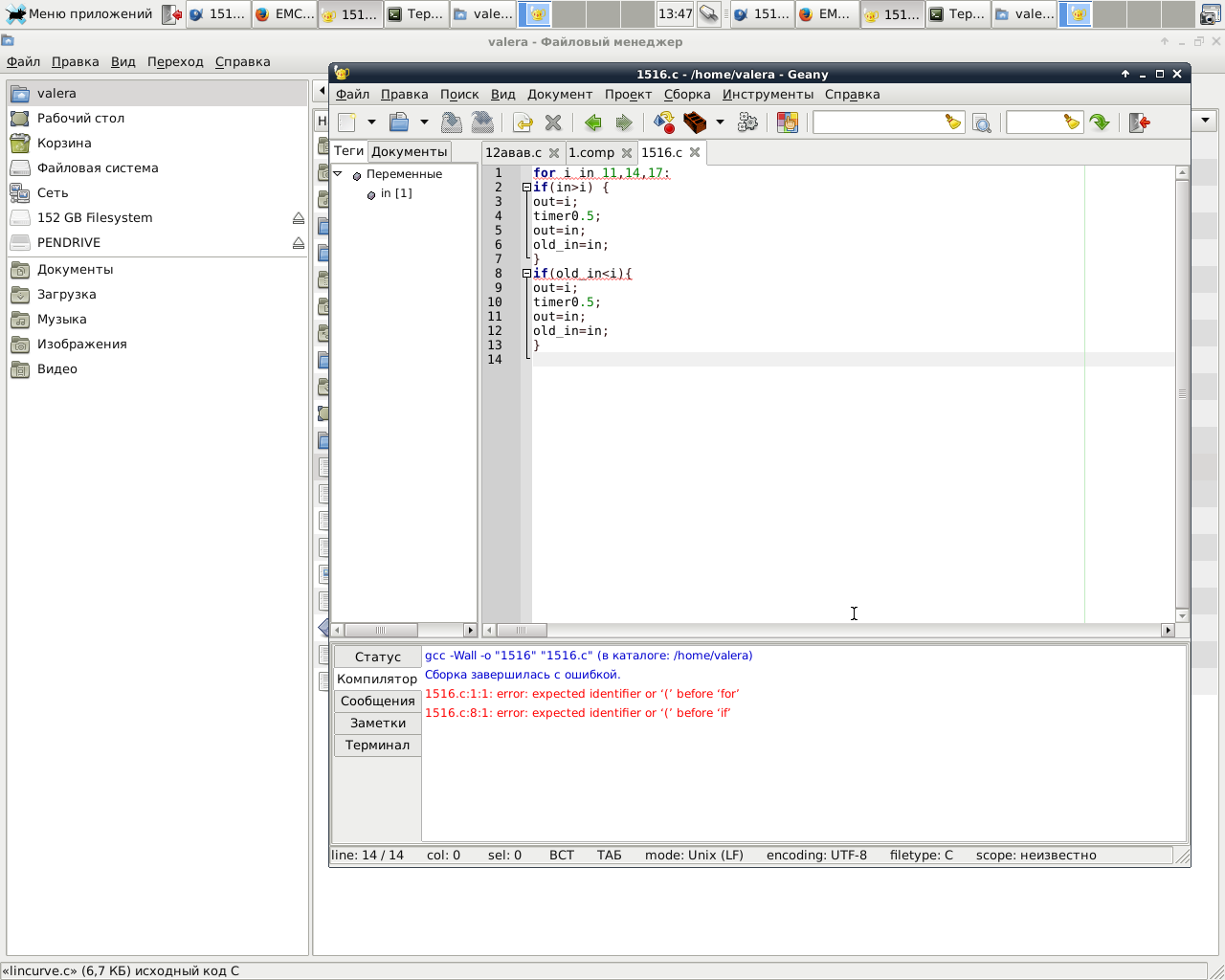 в той же Geany отрабатываем все моменты ,обкатываем нашу прожку,