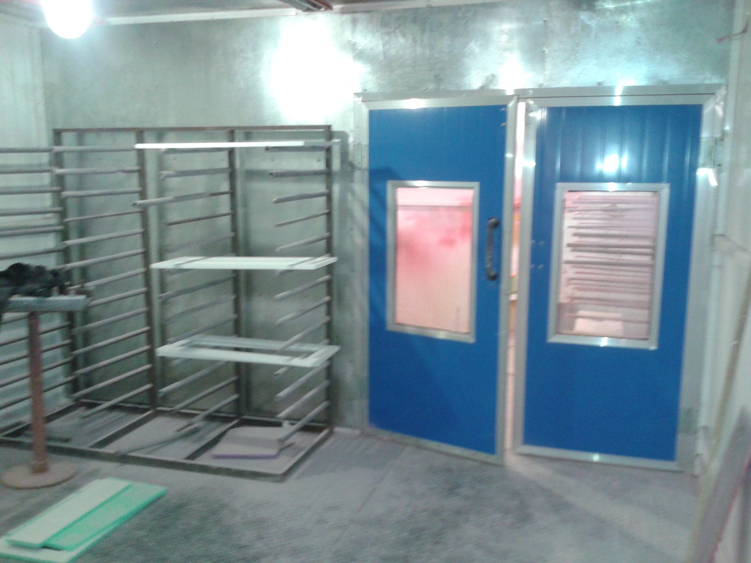 Нашел пару фоток, здесь заводская камера вроде, аппарат хороший и помещение чистое(с плиткой), правда там установка с фильтрами стоит, не знаю для чего она, если на полу краски кучи, но принцип тот же.