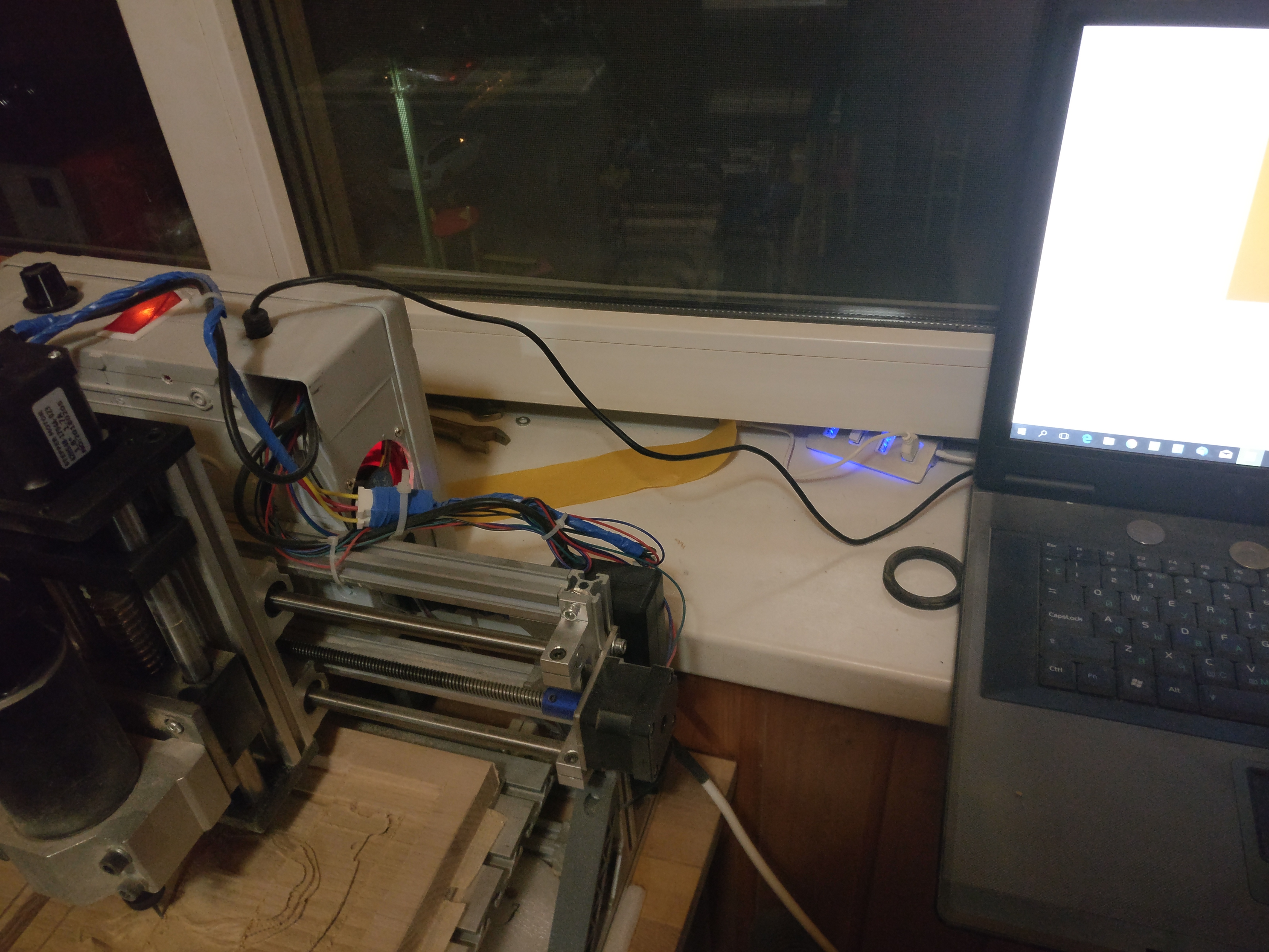 Потому, когда обнаружил, что станок сбоит раз в несколько часов, то сразу же задумался о разъёмах - и для экспенимента притянул фишки канцелярскими резинками поплотней.