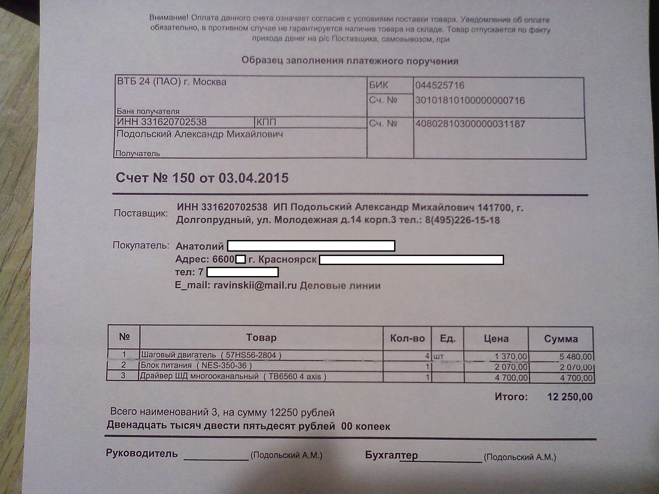 Попросил выставить счет на шкаф, кабели и пусконаладку.
