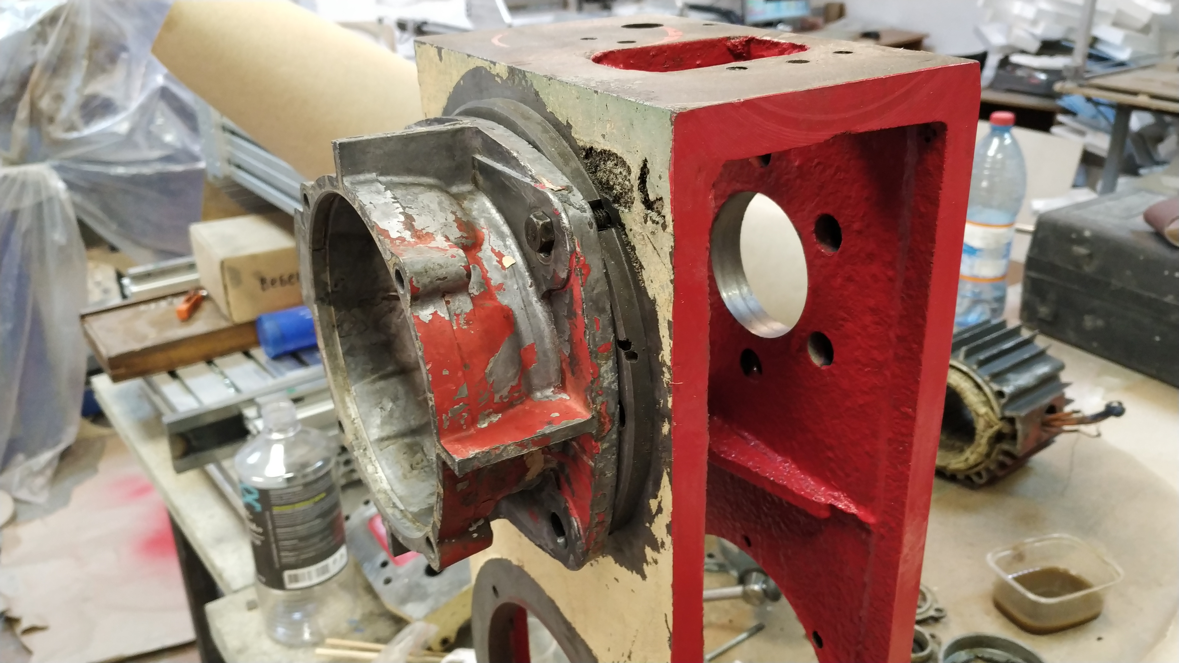 Отмыл вариатор и все детальки. Было подозрение, что в моторе вода, так как вал мотора приржавел к валу чашки и от туда буквально вылилась вода (между фланцем и двигателем).