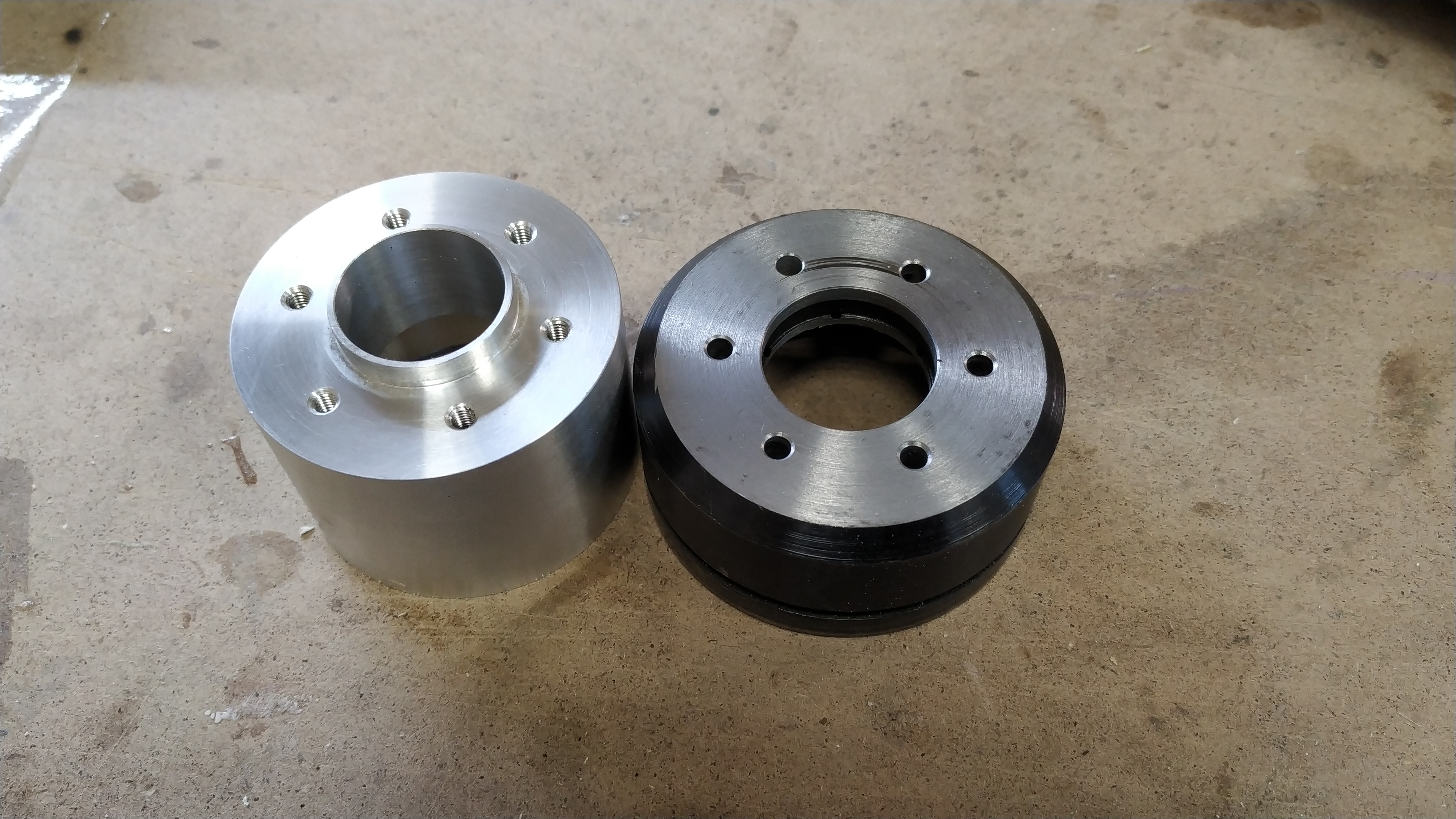 Решил использовать родной фланец. Выпилил проставочное колечко из Д16Т.