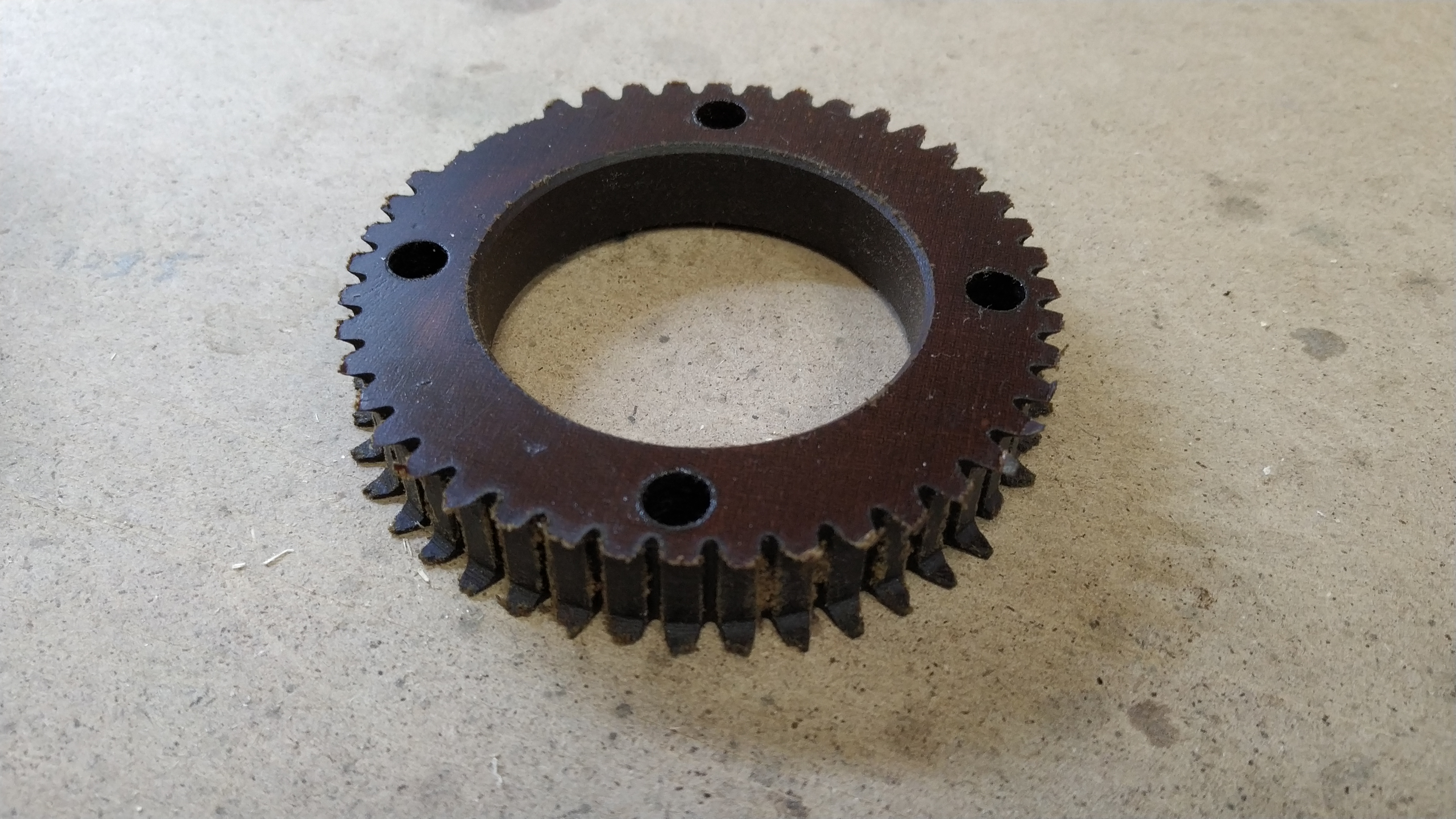 Выпилил новую шестерню из текстолита.