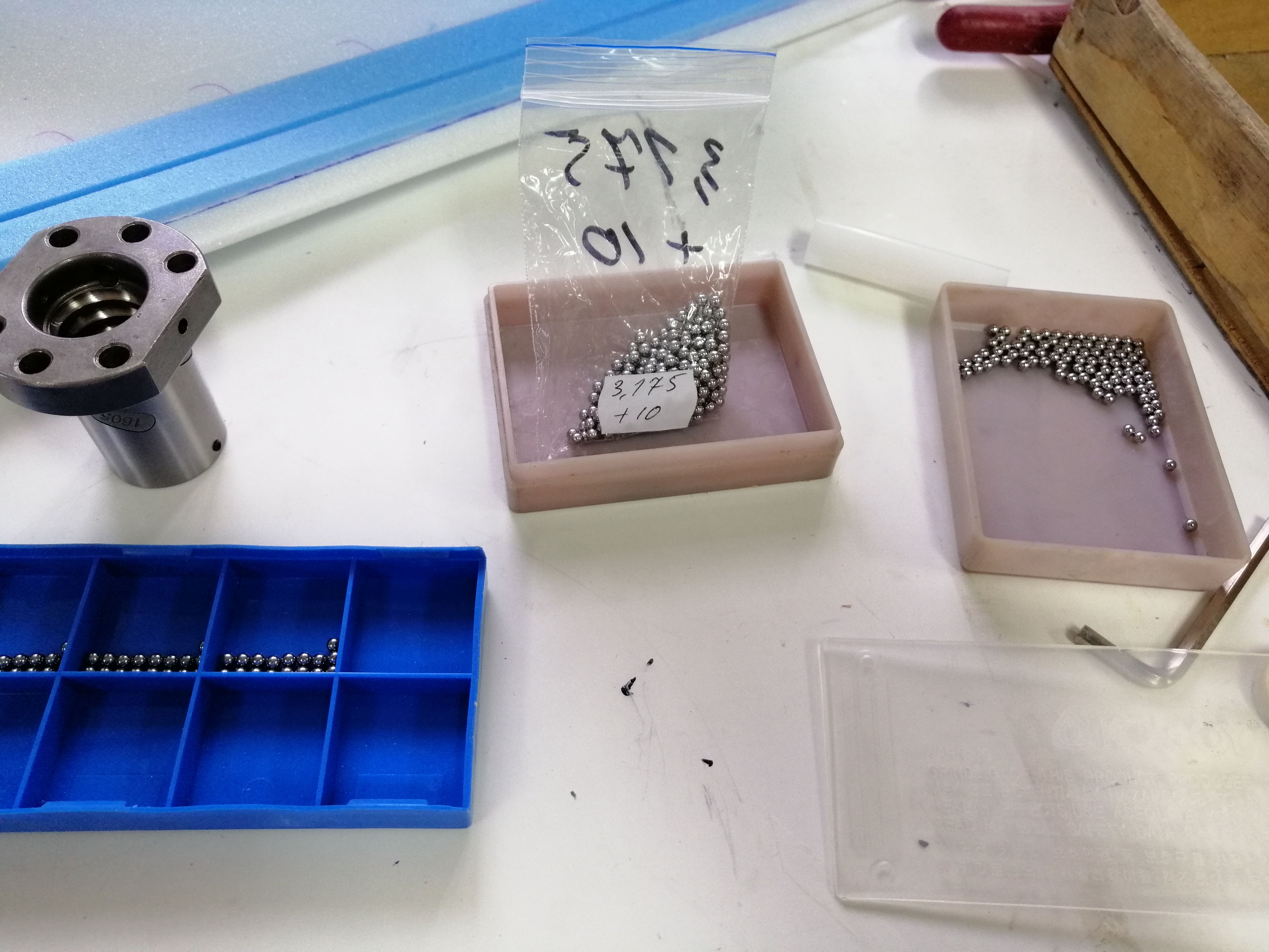 Гайку 1605 с радиальным люфтом вылечил: разобрал, вытряхнул шарики, промыл, ради интереса промерил изъятые шарики ( по 17 в каждом из 4 витков) на стойке- картина удручающая, разбег диаметров до полутора соток :good: