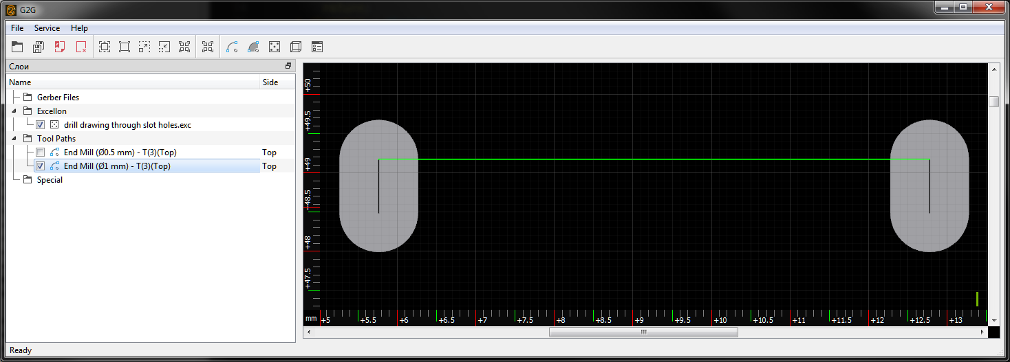 selenur писал(а):А если указать диаметр инструмента, больше чем расстояние между проводниками, или контактами, появится траектория?