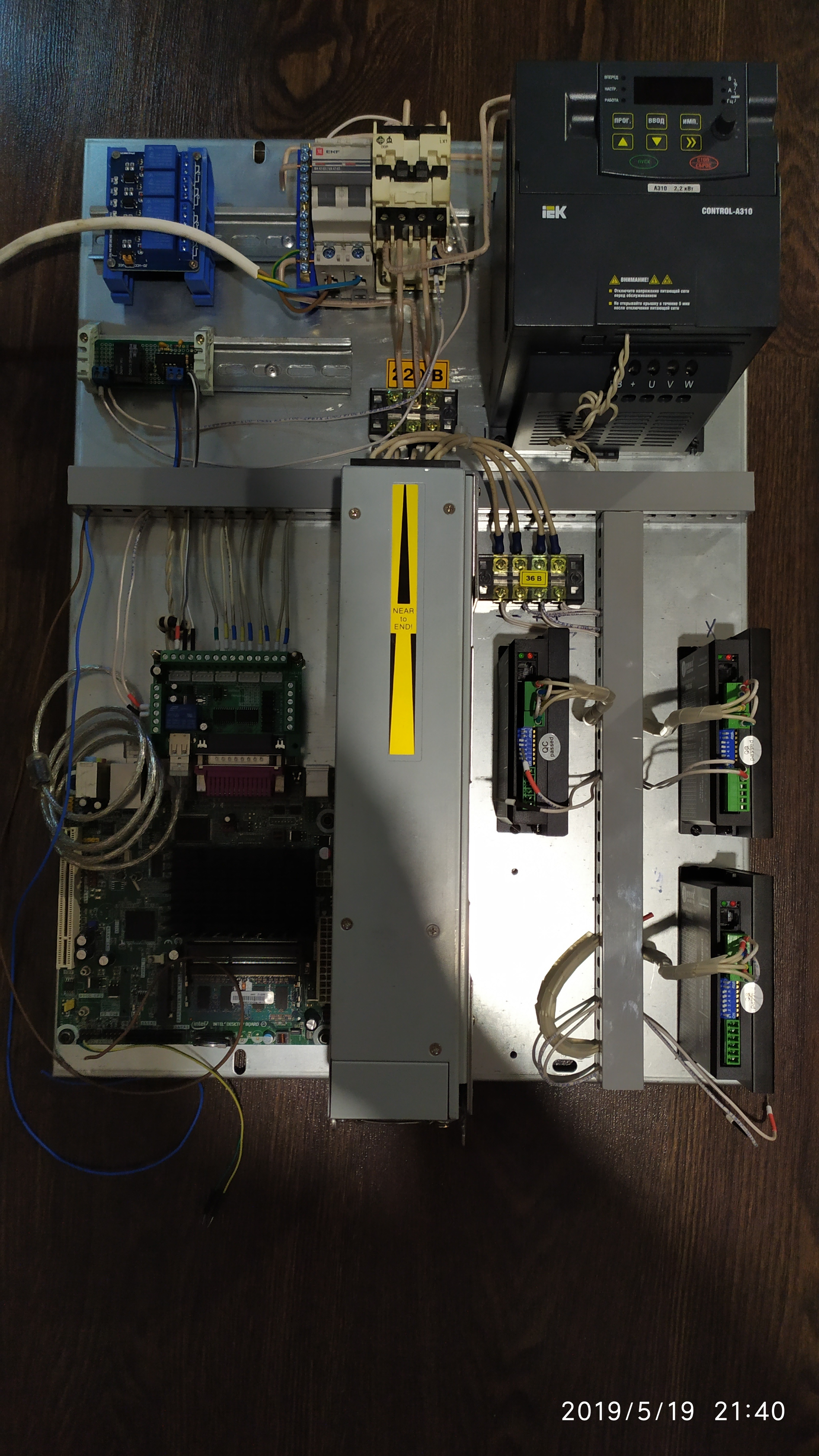 Вчера приехала посылка с драйверами. Весь день занимался шкафом. К вечеру запустил одну ось на 6кг движке