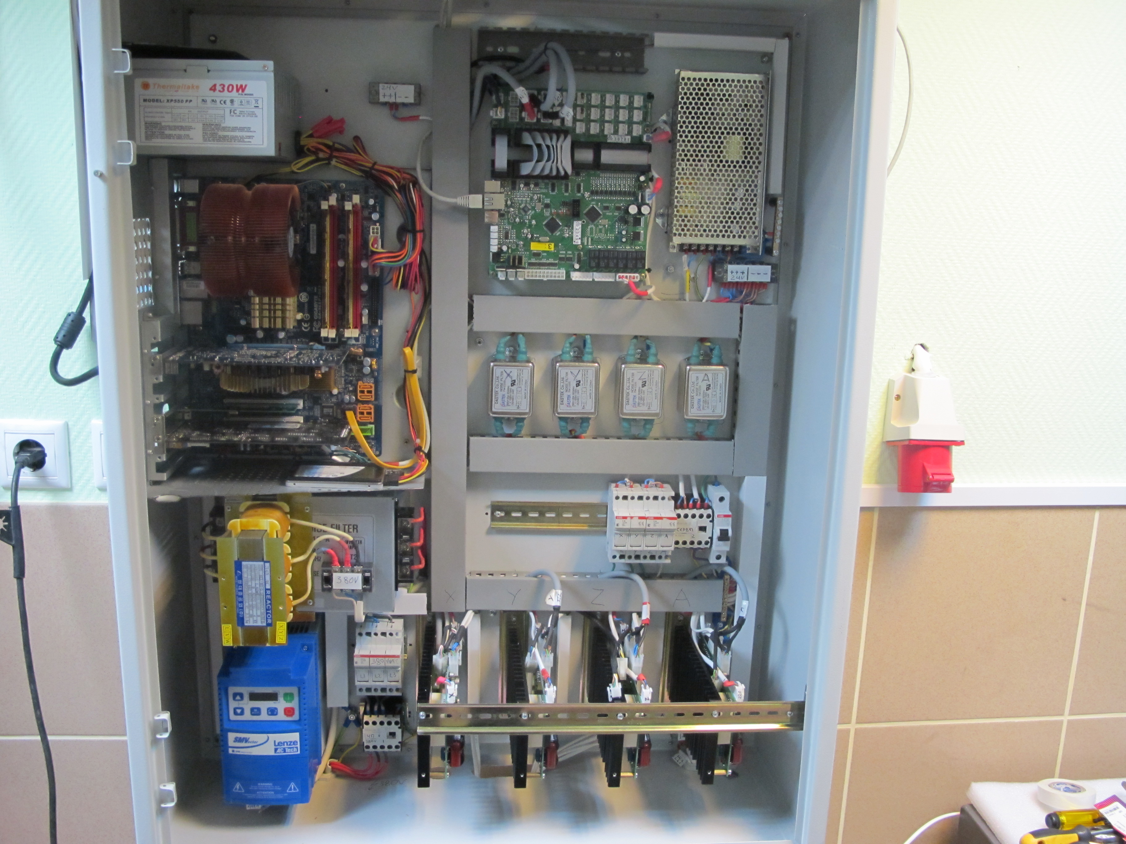 Малость не учёл габариты Эми фильтра на 380в, потом пришлось ужиматься с установкой.