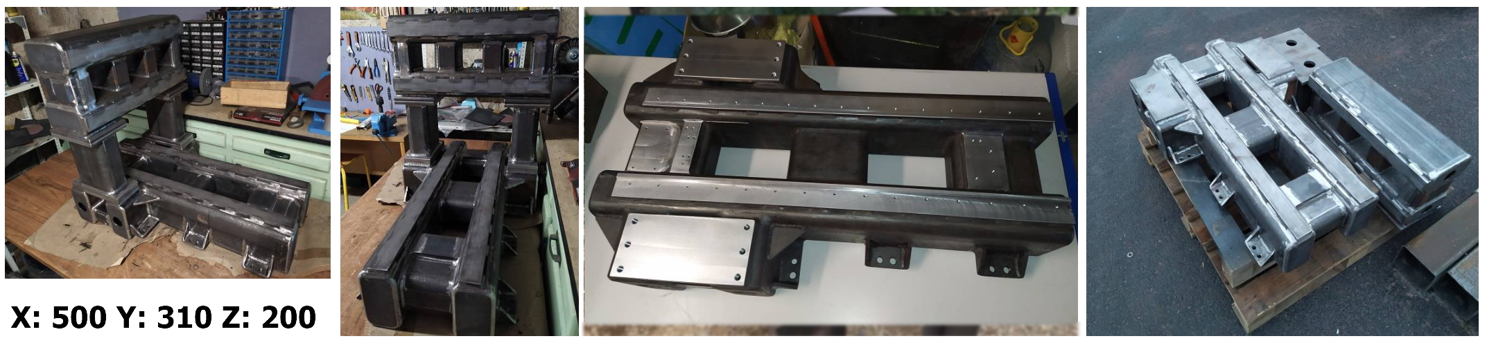 - ось З напоминает жесткий не деформируемый треугольник, который не очень сложно сделать на лазере (изготовить детали на лазере), + плоскости обработать можно на стандартном механическом фрезерном станке, должен поместиться